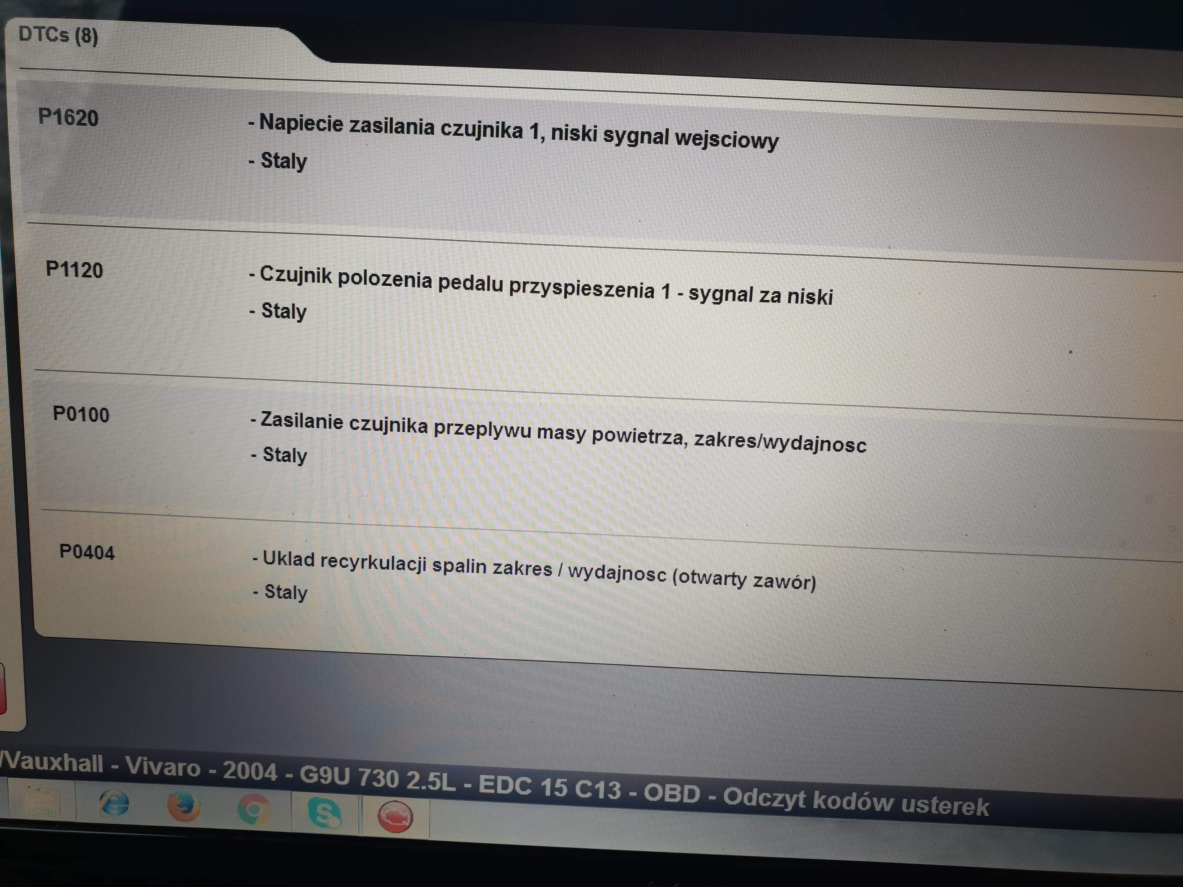 witam wszystkich moj opel vivaro przestał odpalac .Pojawiły sie błedy na wyswietlaczu silnik STOP , swiece zarowe nie gasna . po podpieciu pod kompa poiawiło sie 8 błedów i nie jdzie ich skasowac