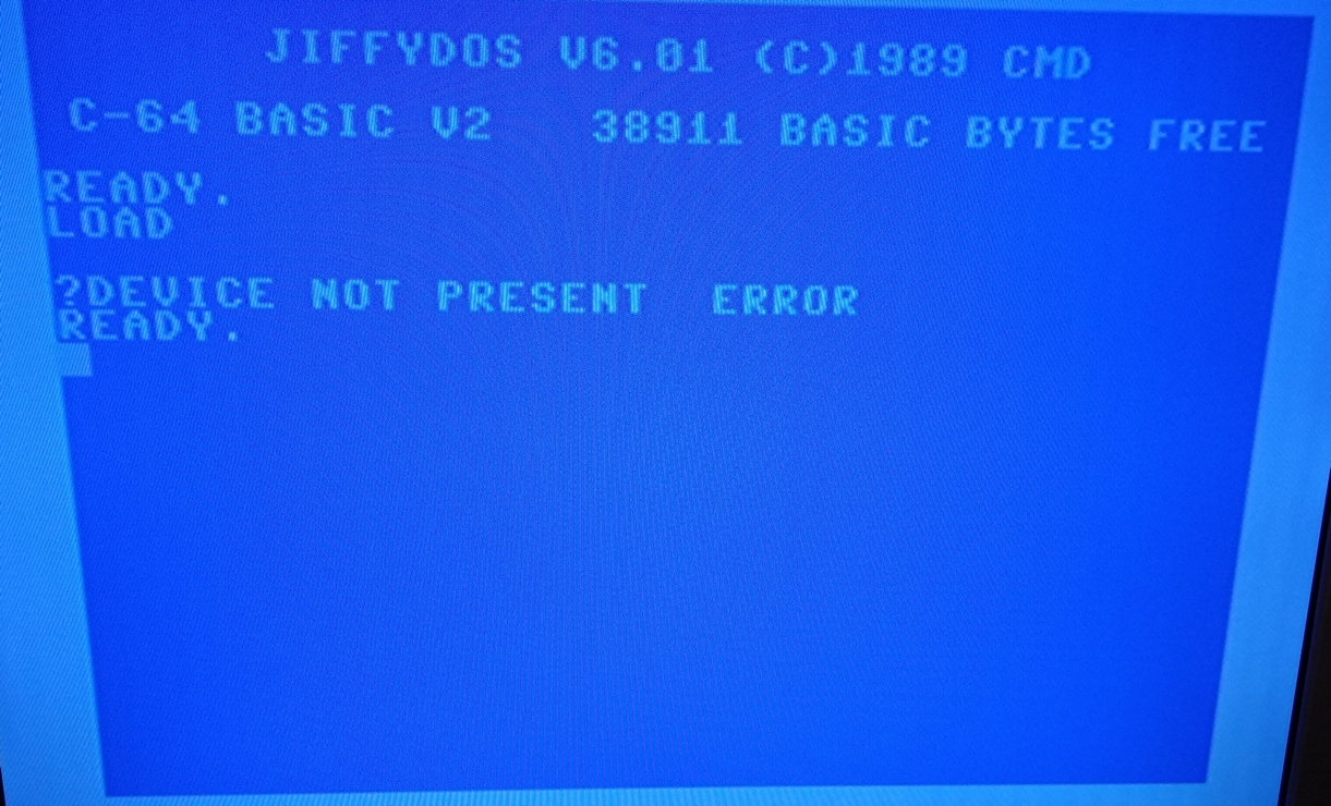 Po podłączeniu do C64 i wpisaniu komendy LOAD wyświetla się komunikat: