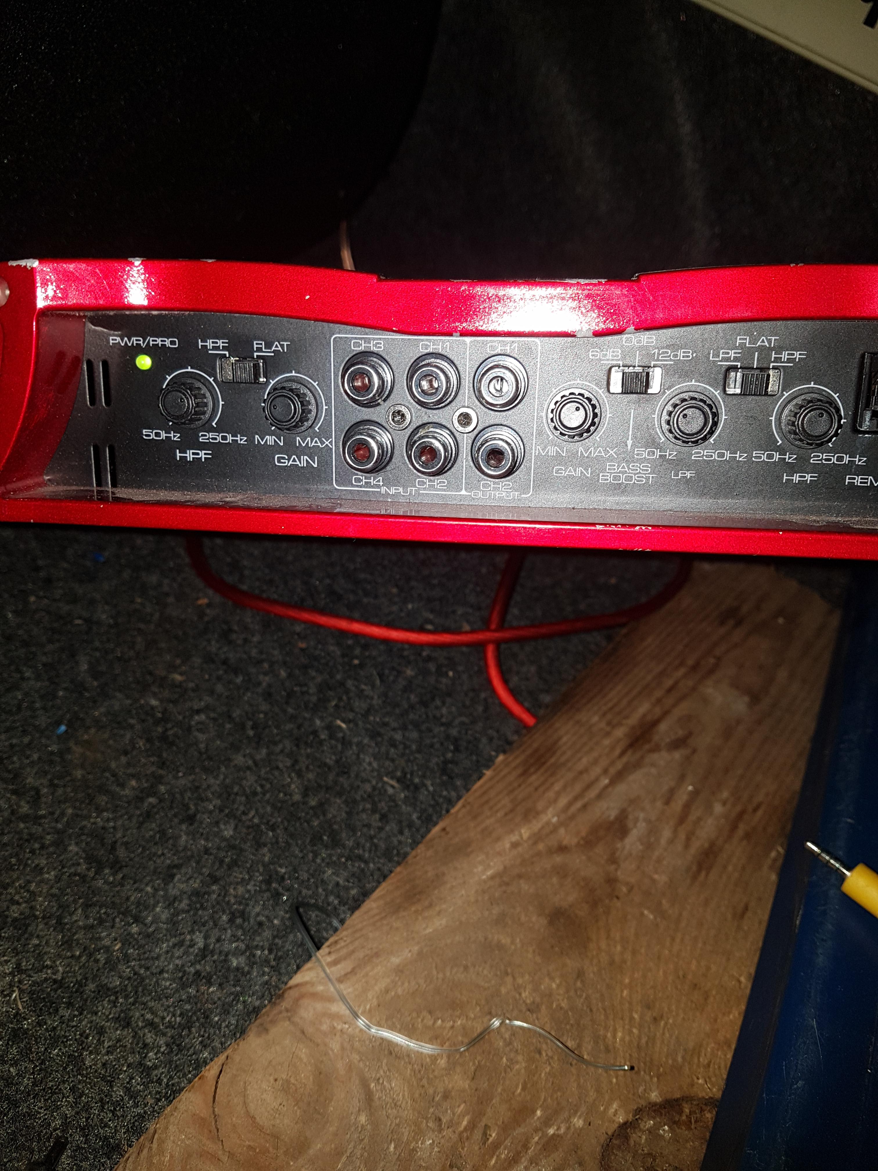 Witam, od razu zaznaczę że jestem zupełnie zielony w car audio. Zakupiłem wzmacniacz jak w temacie do tego subbwofer blaupunkt 700w, podłączenie udało się bez problemu, wzmacniacz załącza się po przekreceniu kluczyka( świeci się zielona kontrolka PWR/PRO) kable RCA podłączone do Ch1 i ch2 input we wzmacniaczu, do radia również ( sony dsx-a30), subwoffer wiadomo do + i - na wzmacniaczu) problem jest taki że nie ma w ogóle dźwięku, nie wiem gdzie może być przyczyną, może macie jakieś rady? W załączniku dołączam 2 zdjęcia wzmacniacza