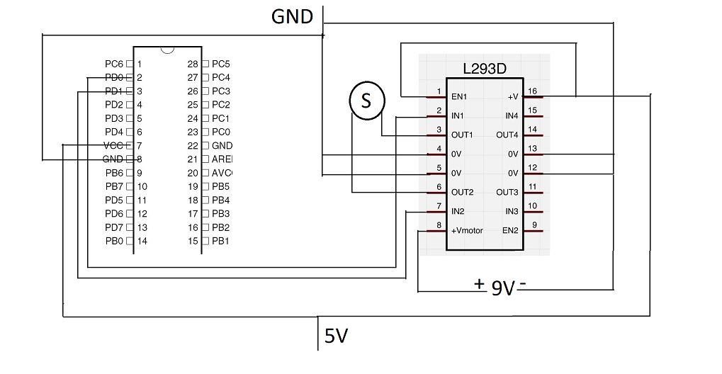 Witam. Otóż mam problem z podłączeniem/bardziej działaniem atmegi8 oraz sterownika L293D. Wszystko jak na obrazku, nie jestem dobry w tworzeniu schematów ale myśle że można się połapać. Silnik po prostu nie startuje natomiast układ okropnie się grzeje. To samo przy próbie zapalenia diody zamiast silnika. Tutaj kod: