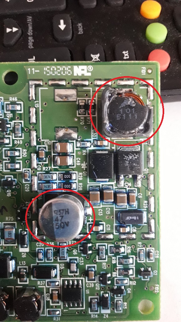Panowie mam problemik z 2 modułami LED. Moduły są uszkodzone, po przez mała stłuczkę auta, ale działają (jeszcze...), jednak piszczą cewki lub kondensatory i ulatnia się dymek po dłuższym ich działaniu z jednego z tych elementów. Obydwa moduły mają widoczne ślady uszkodzenia na tych samych cewkach i kondensatorach. Przesyłam zdjęcie, do rozpoznania tych układów SMD na jednej z tych płytek. Proszę o identyfikacje w miarę możliwości najdokładniejsza zaznaczonych uszkodzonych elementów, abym mógł sobie je zamówić i być pewnym, że są to takie a nie inne, aby nie kupić czegoś podobnego wizualnie i nie spalić sobie całkowicie modułów.