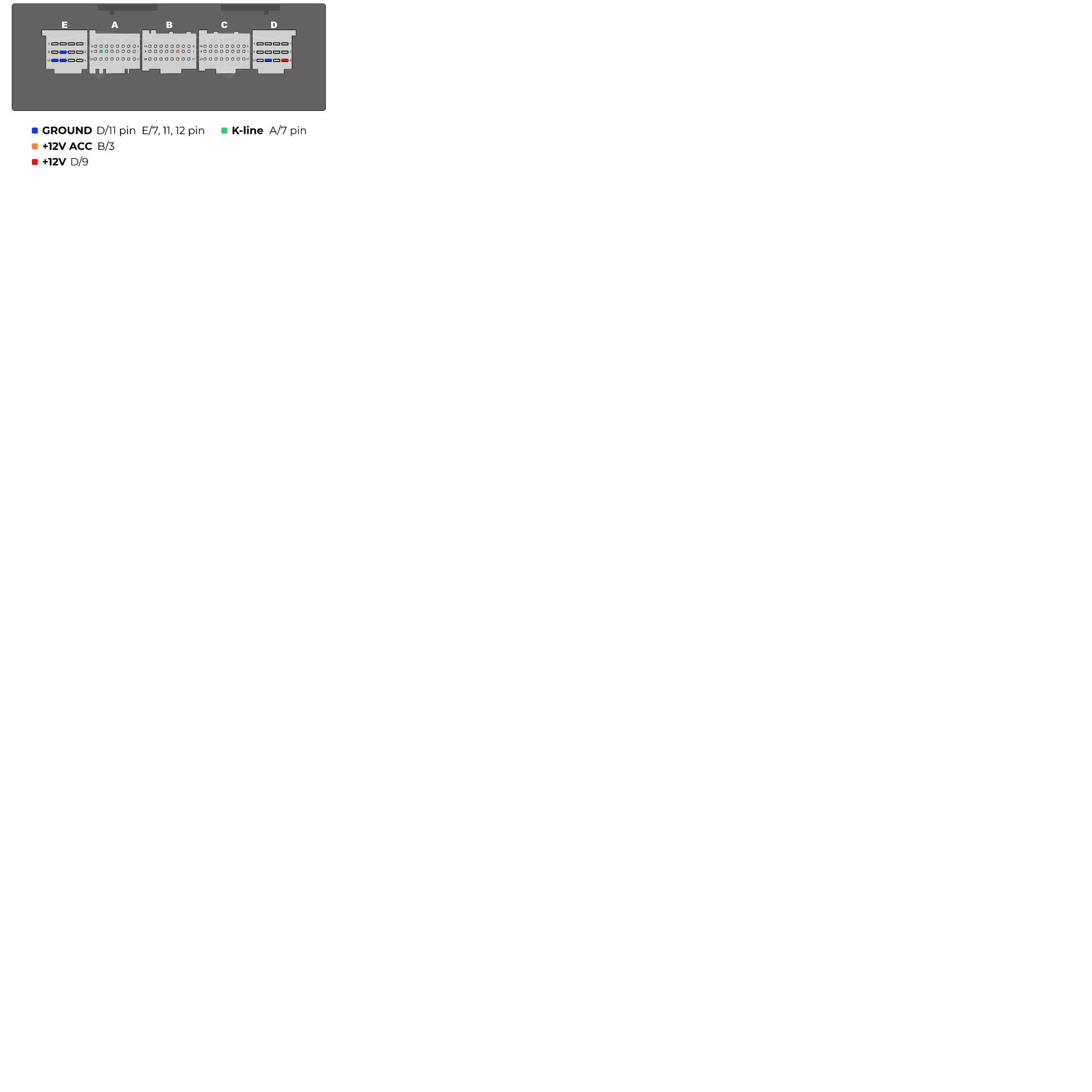 Interesują mnie konkretnie pin masy, pin +12V po kluczyku i pin linii K.