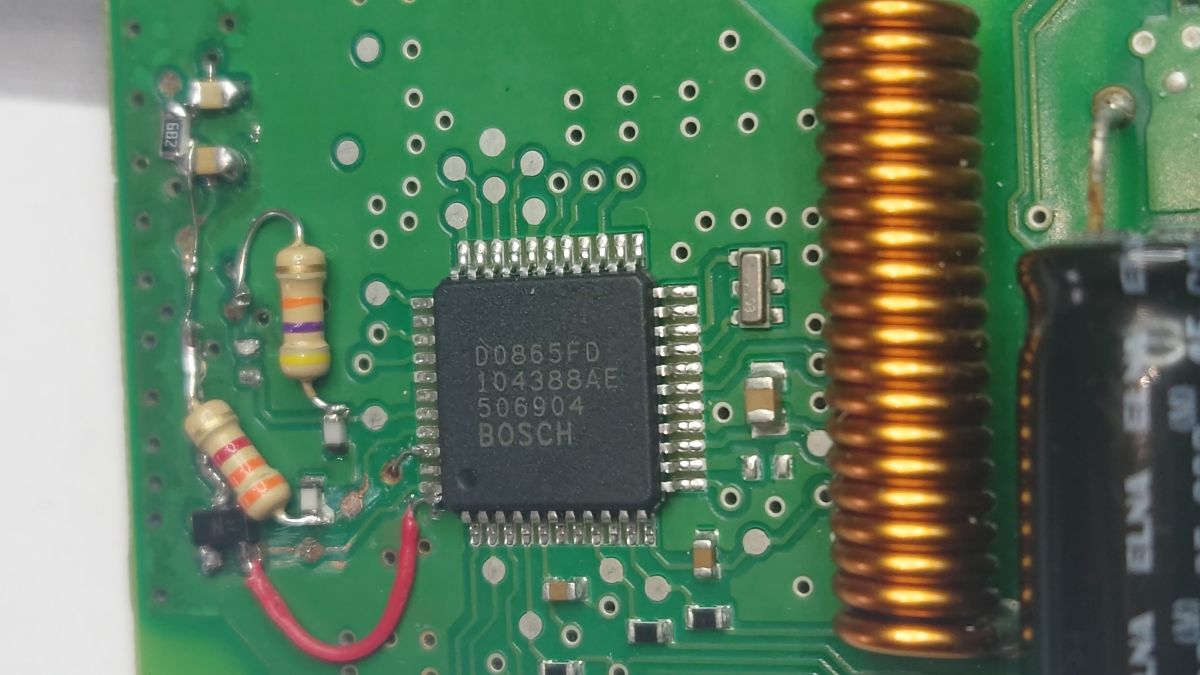 Witam. Dostałem do naprawy takie ustrojstwo, zalane i oczywiście przestało działać. Rozebrałem i odlutowałem płytkę od pinów obudowy i wygląda to tak jak na zdjęciach. Nic nie wygląda na spalone, żaden z tych tranzystor nie ma przebić, jedyne co wygląda mi na podejrzane to zaznaczyłem ramką na czerwono, to miejsce było bardziej czarne(brudne?) niż reszta. Niestety wartości tych rezystorów nie mogę odczytać ten tranzystor? w SOT23 ma oznaczenie WZR ale nie znajduje takiego układu w katalogach SMD (np. http://www.s-manuals.com/smd/) więc w sumie nie wiadomo co to jest, zresztą z pozostałymi w SOT23 jest tak samo. Może ktoś z Was naprawiał takie coś i jest w stanie pomóc?