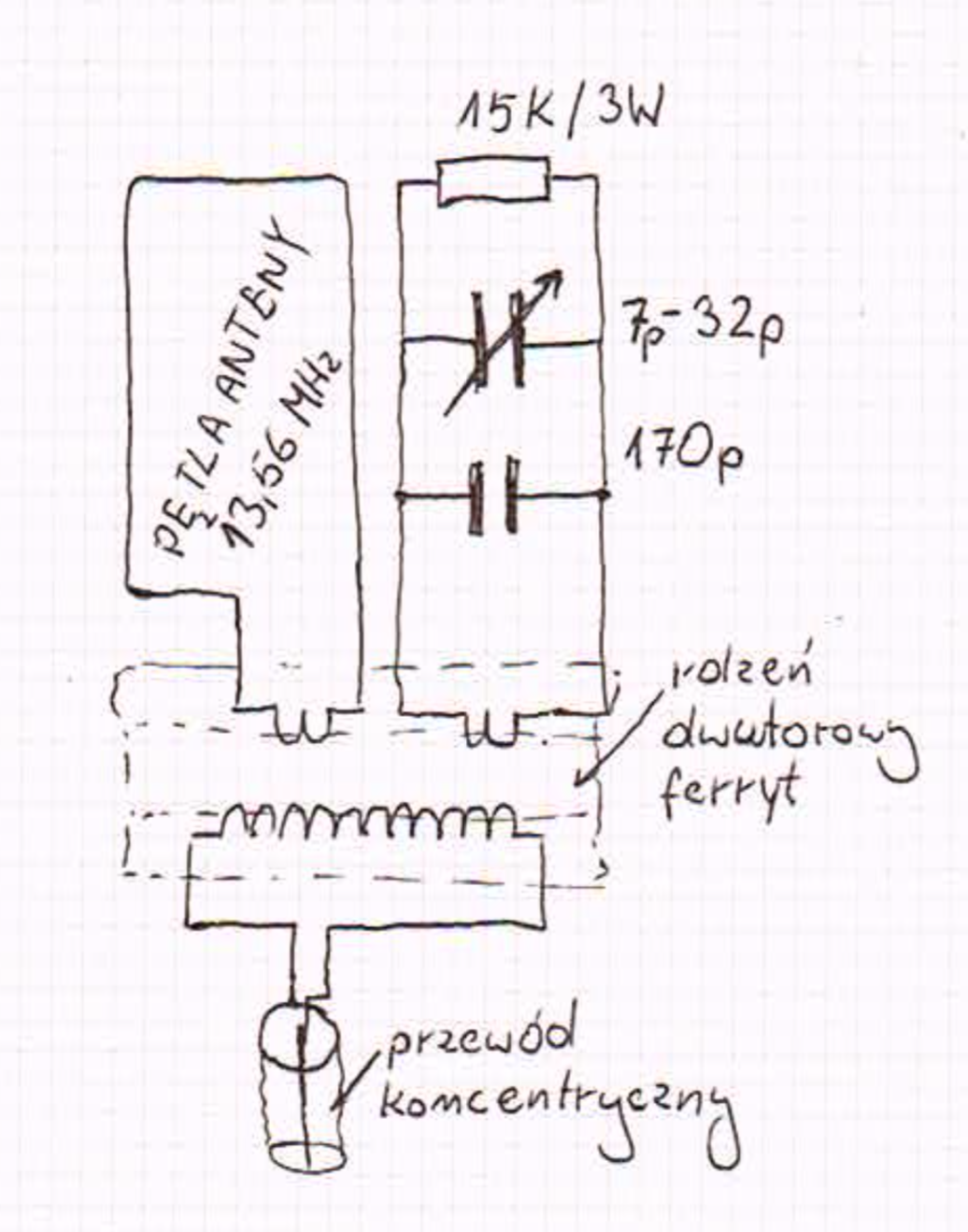 Ostatnio testuję antenę RFID na 13,56MHz z wbudowanym obwodem prawdopodobnie symetryzatora.