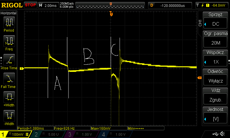 Dla przykładu na 2 cylindrze A to czas ładowania cewki, C czas iskry?, czy B?.Zdięcia w kolejności 1cylinder 2,3,4 licząc od paska rozrządu.
