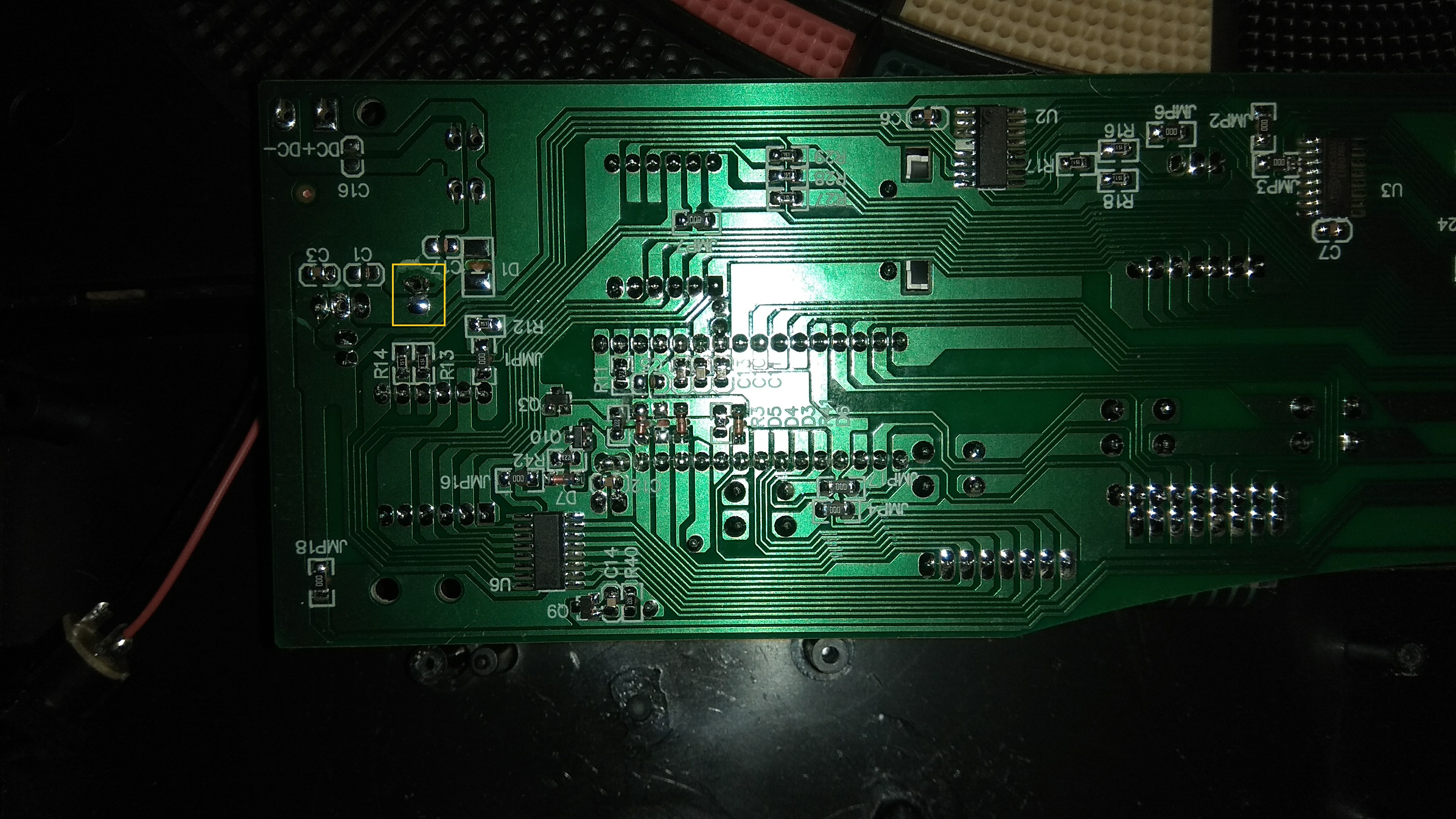 Mam problem z wyświetlaczem segmentowym, lewy nie wyświetla poprawnie "G" choć wszystkie segmenty działają, prawy oraz głośniczek w ogóle nie trybi . Płytka wygląda dziwnie; dlaczego zasilanie jest w zaznaczonym miejscu skoro na płycie jak byk jest z góry oznaczone oraz brakuje elem. gdzie już nałożono klej c1 d1 czy to mozliwe. Czy to scalak zepsuty, jakieś sugestie?