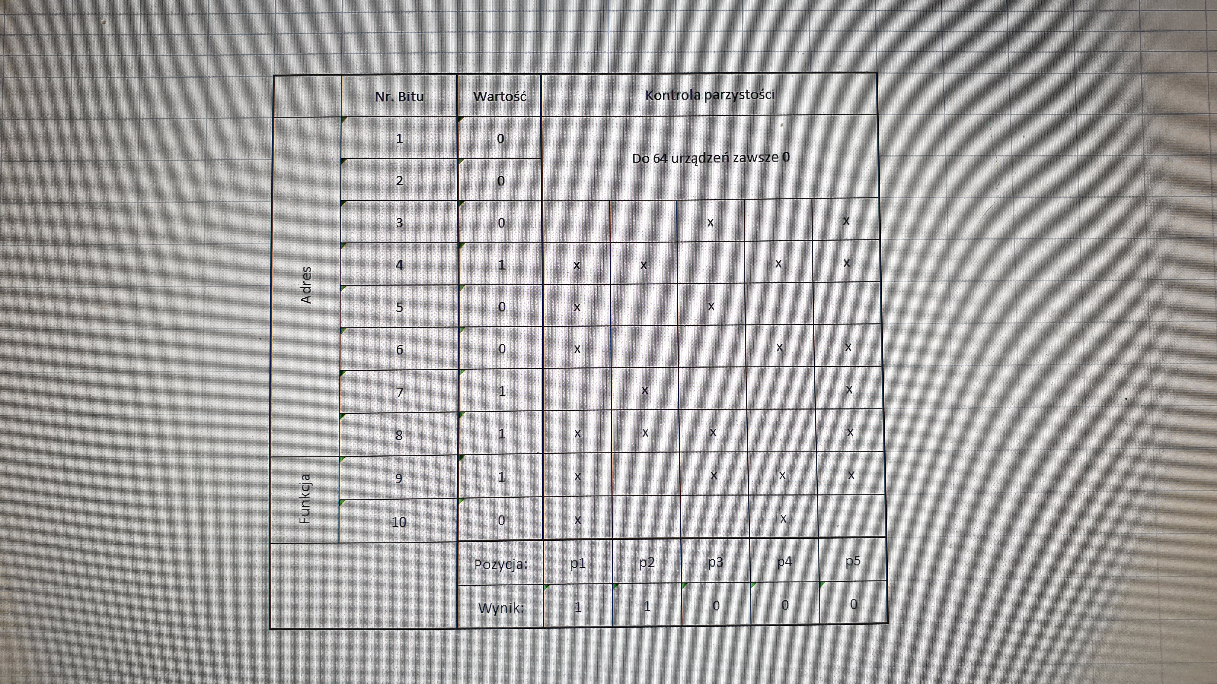 Czy ktoś już rozpracowywał takie sterowanie? Jest to system pracujący na dwóch liniach, amplituda sygnału 10v, jedno urządzenie sterujące i mozliwość wpięcia 64 urządzeń wykonawczych. Wszystko połączone równolegle. Urzadzenia wykonawcze nie dają sygnału zwrotnego, stad pewnie sterownik wysyła kilka identycznych sygnałów, żeby była gwarancja wykonania. Kod składa się z 16 bitów, pierwsze 8 koduje adres urzadzenia wykonawczego, z tym ze pierwsze ma adres 0000 0000, nastepne 2 bity to funkcja 01, 10, 11, a ostatni prawdopodobnie jest bitem parzystosci. I tyle udalo mi sie rozpracować. Nie mogę wyczaić bitów od 11 do 15. W załączniku wykres, dosc specyficzny system transmisji, moze ktos juz to widział i rozpisane kilka poleceń.
