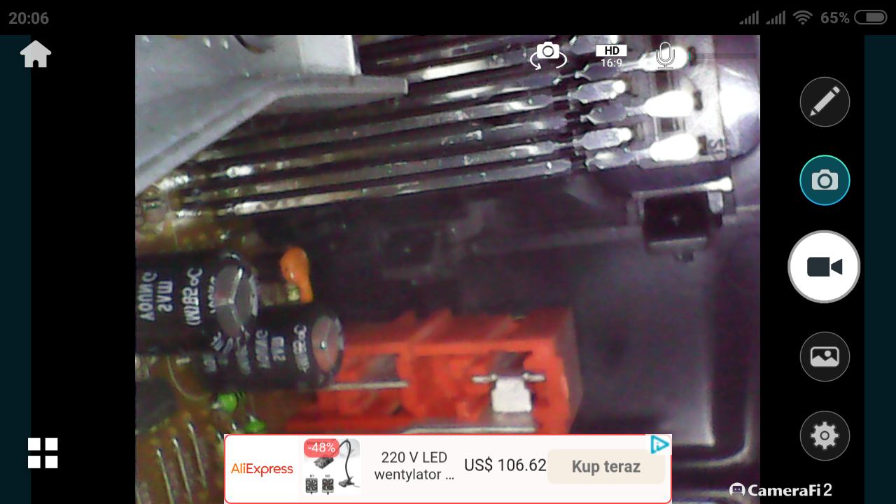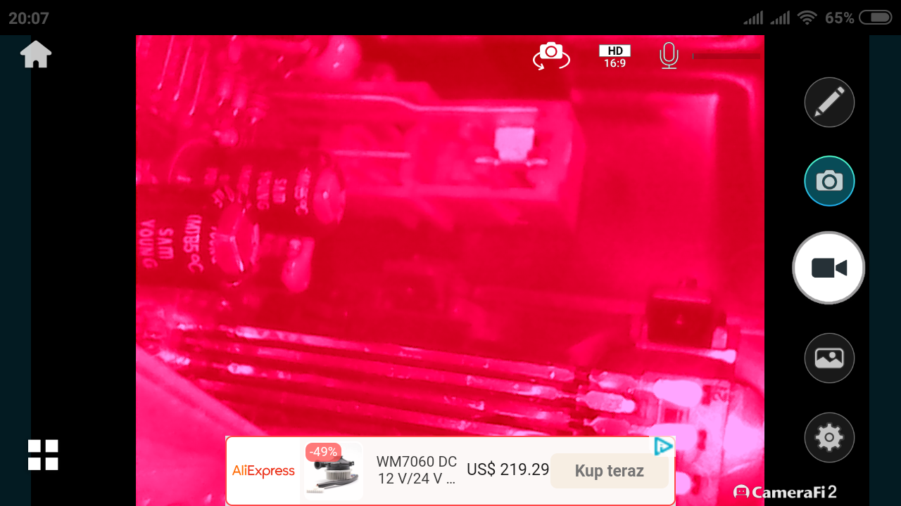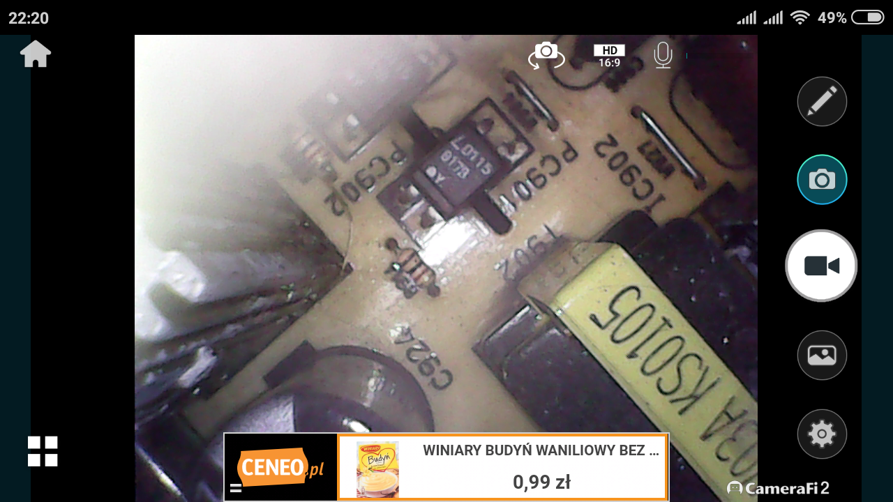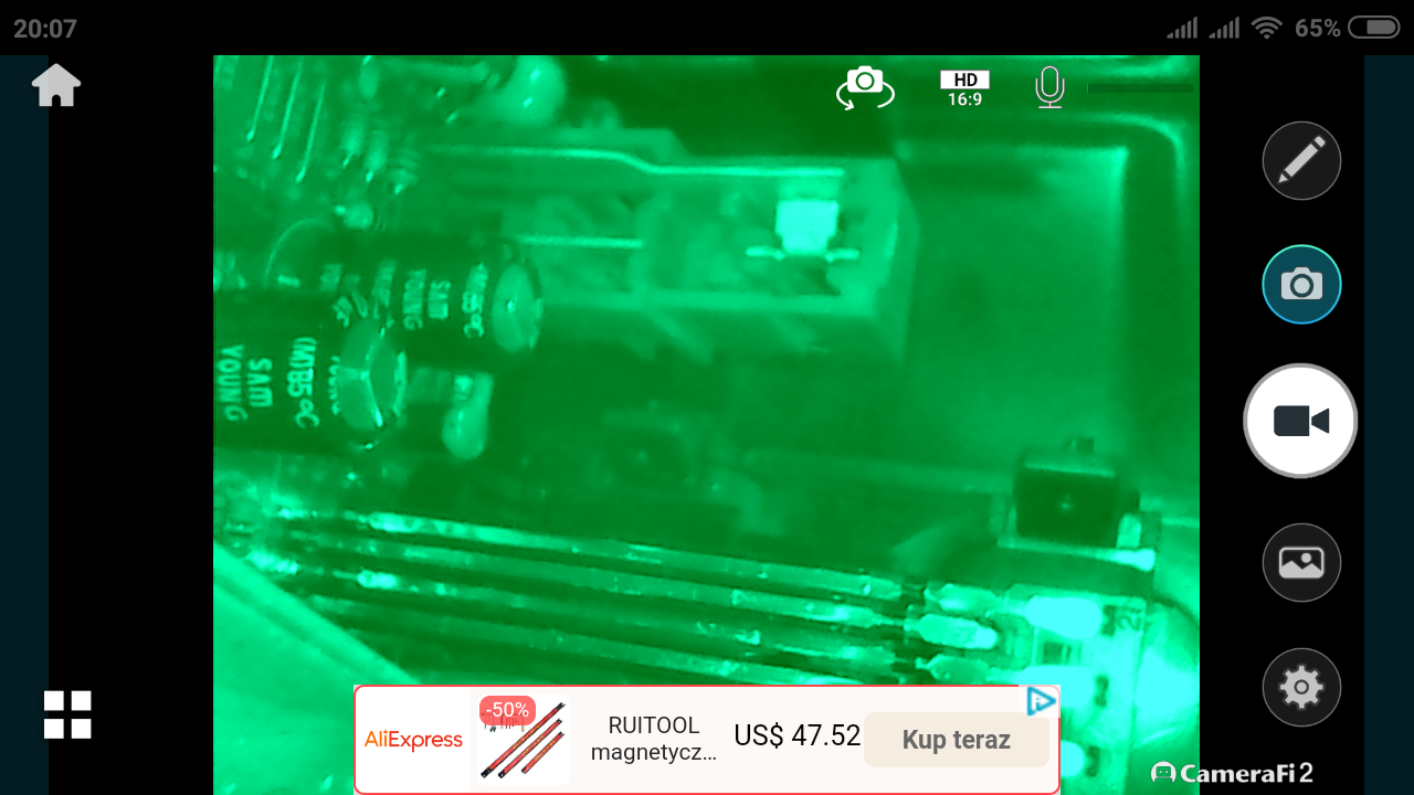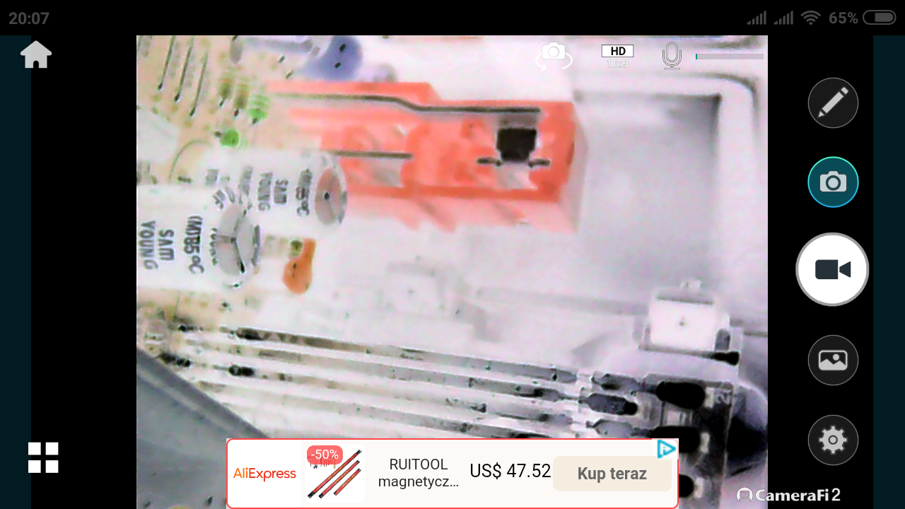 Po podłączeniu kabla micro USB z endoskopem, od razu zapala się jego podświetlenie, obraz pojawia się także na ekranie mojego telefonu. Działa zarówno z aplikacją w wersji 1 oraz 2. Warto nadmienić, iż zgodnie z instrukcją telefon musi posiadać OTG, oraz obsługiwać zewnętrzne kamery (UVC), może dlatego nie wszystkim to działa?