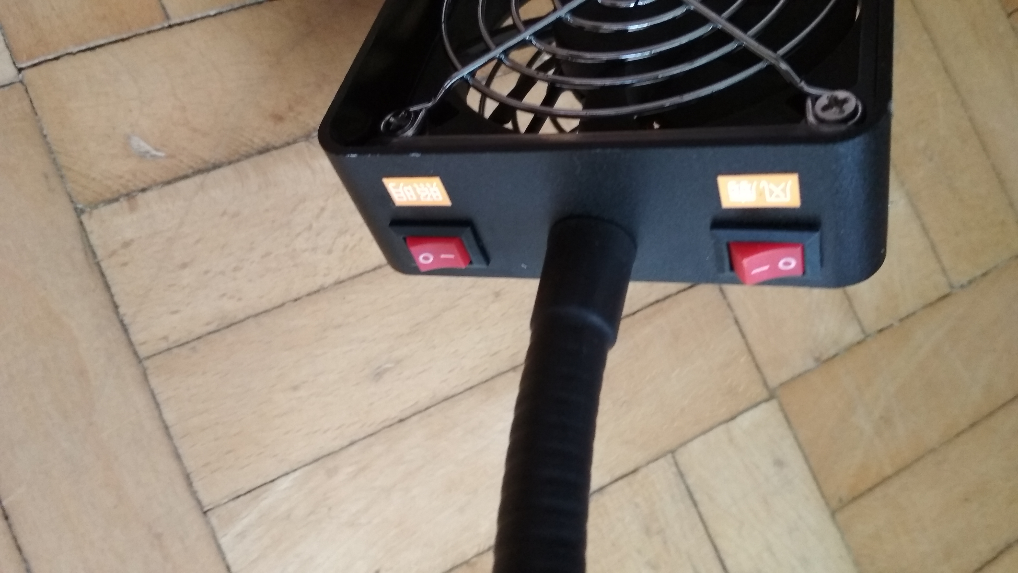 Na koniec podsumowanie. Moim zdaniem jak wspominałem już, trzeba do tego sprzętu dokupić dodatkowo filtr węglowy (i osłonę, żeby go dobrze zamocować), bez tego nie jest to pochłaniacz:) Jeżeli chodzi o wydajność z już zamontowanym filtrem to nie jest źle jak na tak małe wymiary. Z odległości ok 45cm opary są wciągane, oczywiście jeśli są zbyt kłębiaste to nie wszystkie, no i najlepiej żeby pochłaniacz był umieszczony bezpośrednio nad źródłem dymu. Możliwe jest to dzięki małym wymiarom oraz dobremu ramieniu, które jednak może okazać się zbyt krótkie przy niektórych pracach. Nie wiem czy w tych gabarytach udało by się uzyskać jeszcze większy przepływ powietrza. Podczas testów mocowanie do blatu na klips, mimo mocnej sprężyny nie zbyt dobrze zdało egzamin. Podczas ruszania ramieniem uchwyt się przemieszczał, trzeba by jakoś to wzmocnić. Podświetlenie LED na pewno przydatne, chociaż powinno w pierwszej kolejności zwrócić się uwagę na ustawienie statywu pod kątem odciągu oparów, podświetlenie może nam podświadomie wymuszać ustawienie go pod kątem lepszego doświetlenia.