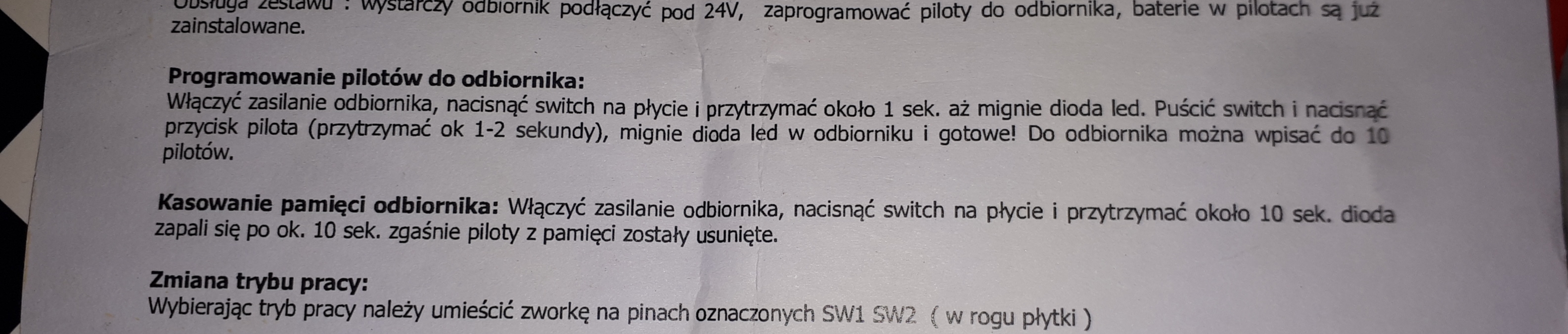 Mam problem bo nie mogę zaprogramować pilotów. Bo zrobiłem najprostszy obwód zdalnego sterowania i nie działa. Robię tak jak na instrukcji. I czy po poprawnym programowaniu to dioda podczas przycisku nie powinna się swiecic? Sterowanie to najprostszy 4 kanałowe z allegro.