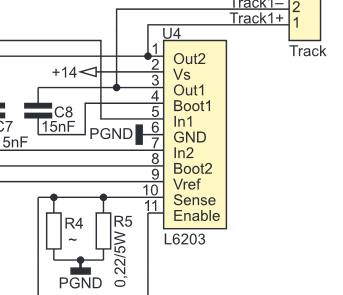Sense to rezystor pomiarowy do pomiaru prądu obciążenia ( wewnętrzne połączenie z drenami "dolnych" tranzystorów mostka.