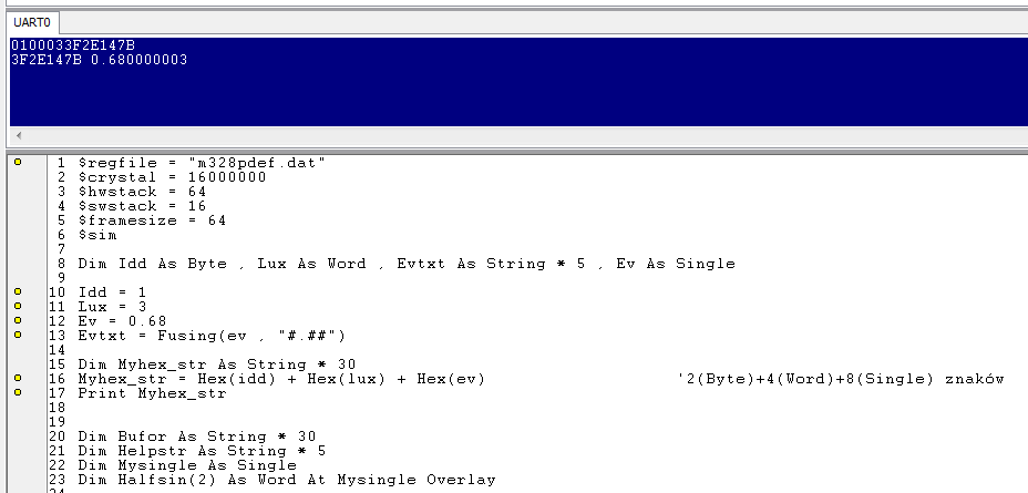 Próbuję to zrobić w ten sposób i nie działa. Do zmiennych nie przypisuje się nic co można zobaczyć na LCD, a gdy podejrzę zmienną Bufor to siedzi tam zmienna EVtxt z nadajnika. Podgląd zmienych robię na lcd, potem wysyłam znak ?(63) i czekam na odpowiedź.