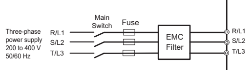 na podstawie instrukcji obsługi falownika (przemiennika częstotliwości) V1000 CIMR VCBA0003 (jednofazowego), który zasila silnik indukcyjny 3fazowy próbuje ustalić sposób wykonania strony zasilania (mocy). Wg. instrukcji należy zastosować zabezpieczenie (bezpiecznik) oraz stycznik. Niestety ta instrukcja jest przeznaczona dla przemienników 3fazowych oraz 1fazowych i precyzuje tylko ten pierwszy typ.