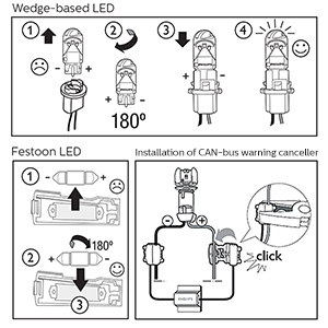 W takiej sytuacji wysoce prawdopodobne jest, że sterownik z racji tego, że LED pobiera znacznie mniej prądu od zwykłej żarówki "myśli", że żarówka się przepaliła i wyłączył oświetlenie tablicy.