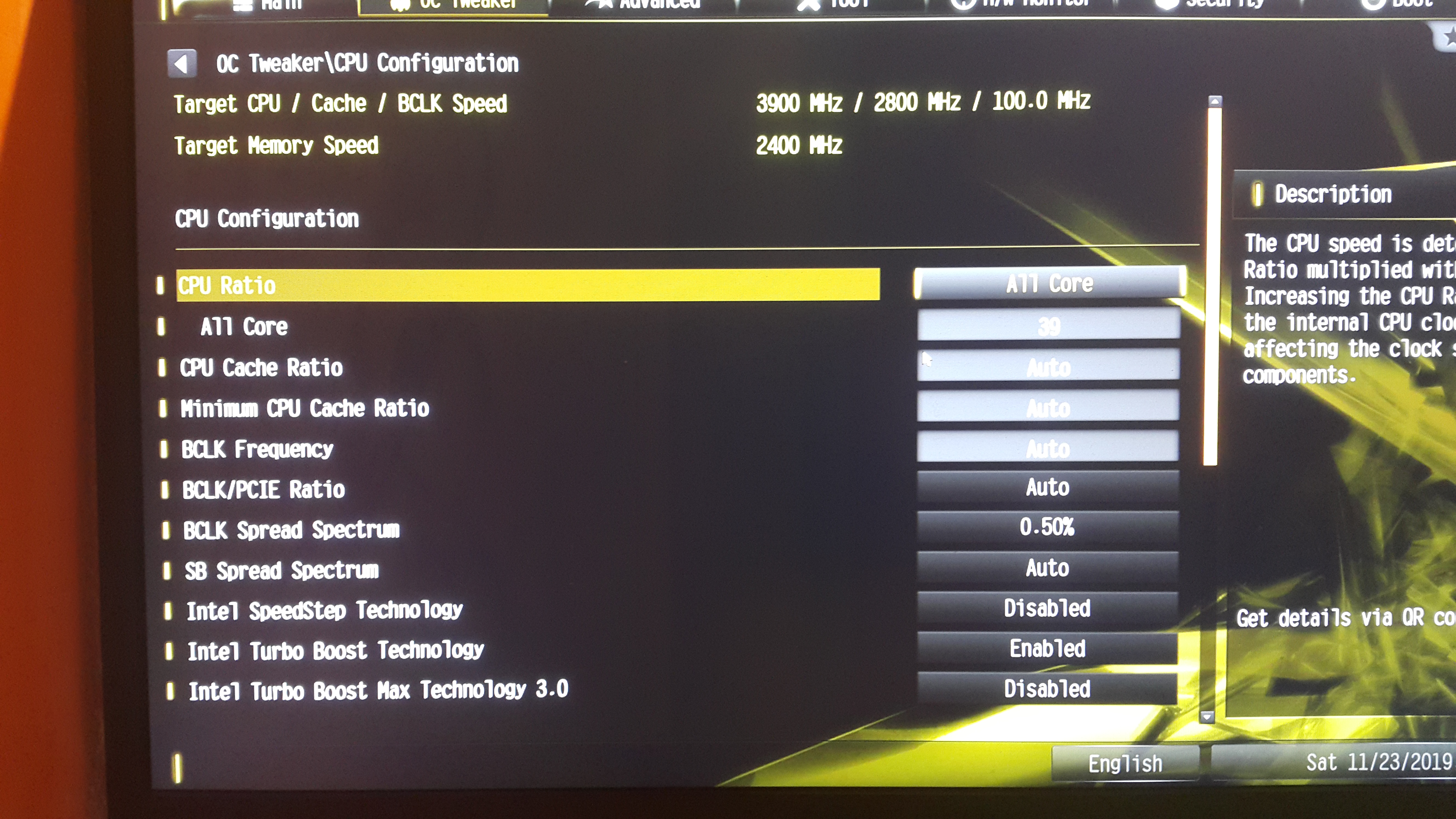Więc tak, próbuję podkręcić procesor, stopniowo bez pośpiechu zacząłem z CPU Ratio, z 36 na 37, potem na 38, następnie na 39 i tutaj ku mojemu wielkiemu zdziwioniu pod obciążeniem różnymi programami, ale np. CineBench R20 wątki po 3,8Ghz, a tylko