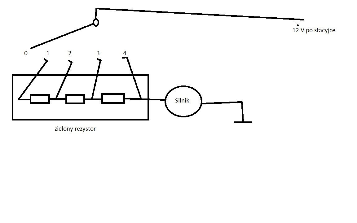 Ten rezystor da Ci tylko 4 biegi. Ostatni, najwyższy to bezpośrednie zasilanie bez opornika. Rozrysuję jutro ogólny schemat, ale kolejność pinów na rezystorze nie znam. Rezystor musisz umieścić w kanale powietrznym za dmuchawą, inaczej szybko się przegrzeje i spali.