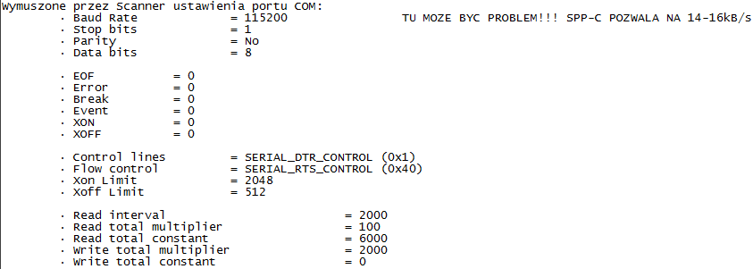 Interfejs Opel Scanner wymusza takie ustawienia komunikacji w Win7, Ntddser.h /SERIAL_TIMEOUTS structure :