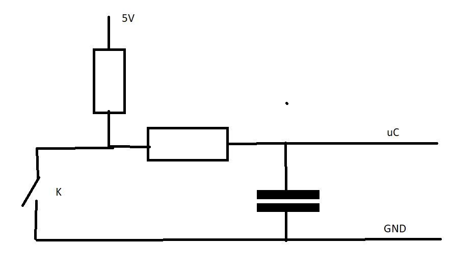 Obwód wejściowy to rezystor 22k jako pullup i kondensator 100nF. Kontaktron zwiera do masy wprost podłączony do wejścia. Dodam że mam kilka takich samych urządzeń i na wszystkich to samo się dzieje.