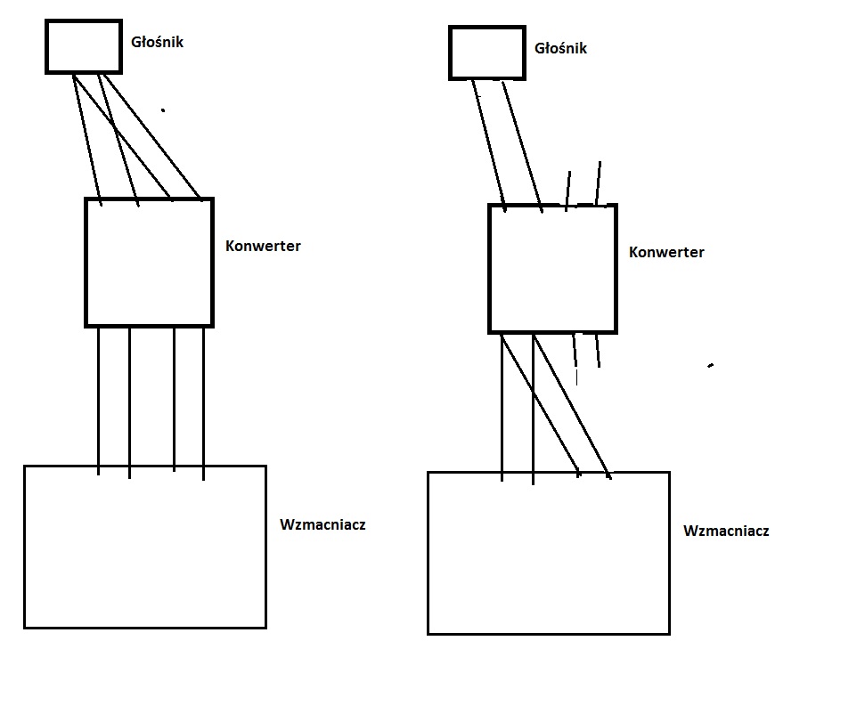 Ten gdzie dziele sygnał głośnikowy na dwa kanały przed konwerterem, czy ten gdzie dziele sygnał RCA za konwerterem na dwa kanały, czy porostu najzwyczajniej w świece puścić tylko jeden kanał RCA pod wzmacniacz.
