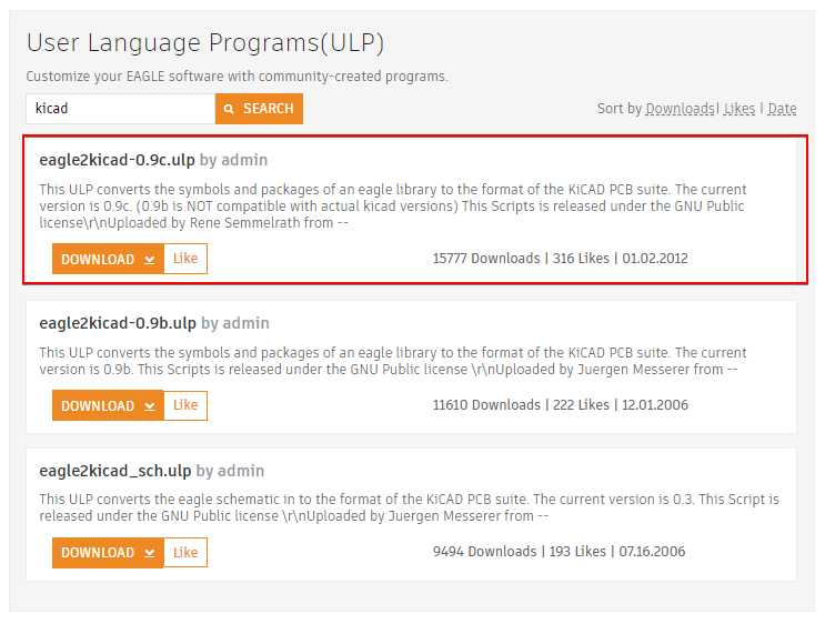 Czu ktoś z Kolegów mógłby sprawdzić, czy mu też nie będzie chciał się pobrać skrypt konwertujący biblioteki z Eagle-a do KiCad-a w wersji: eagle2kicad-0_9c ?