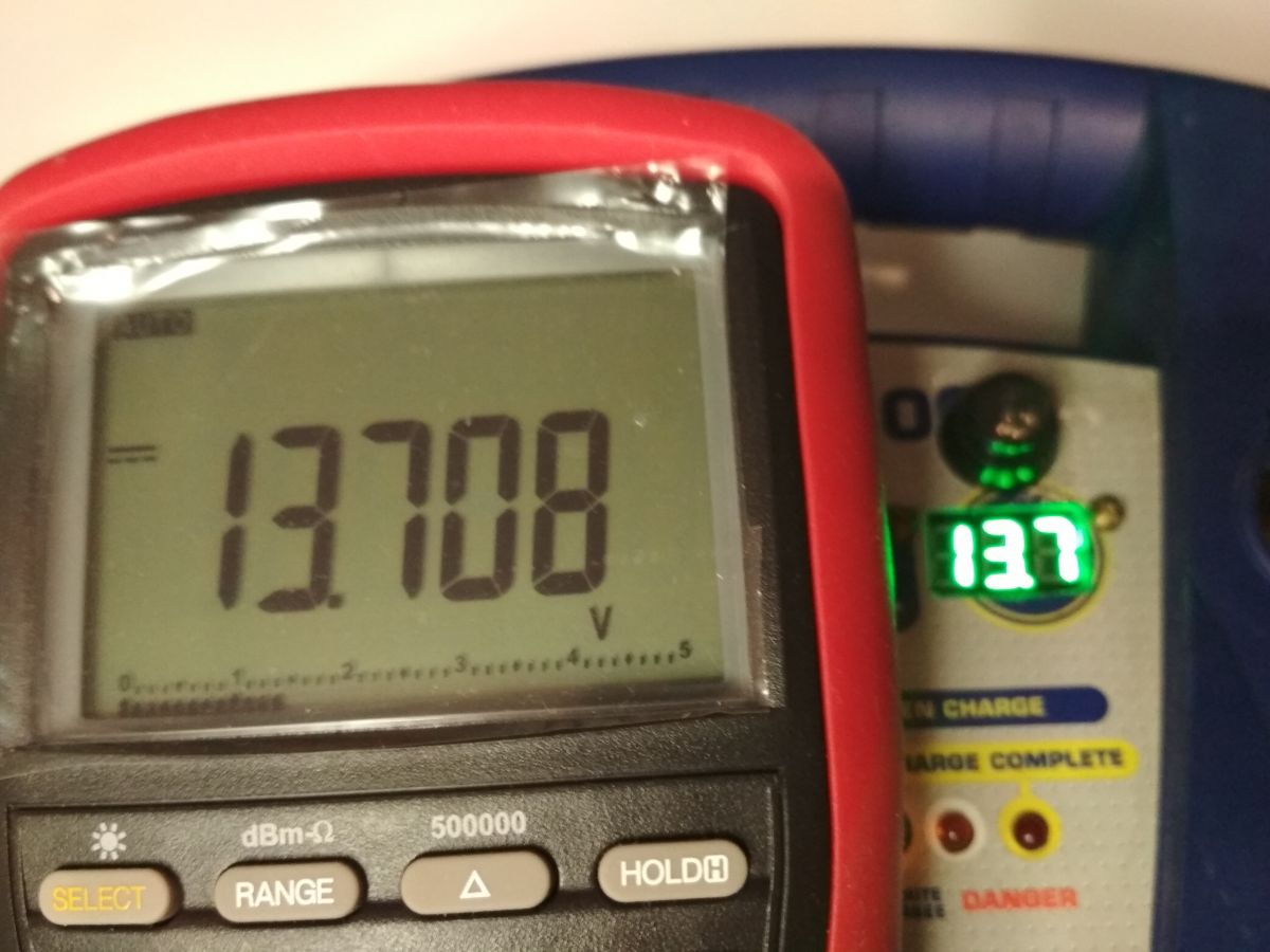 Stan akumulatora w boosterze po dwóch wspomaganiach uruchomienia. Chociaż i tak początkowy nie był naładowany do końca.
