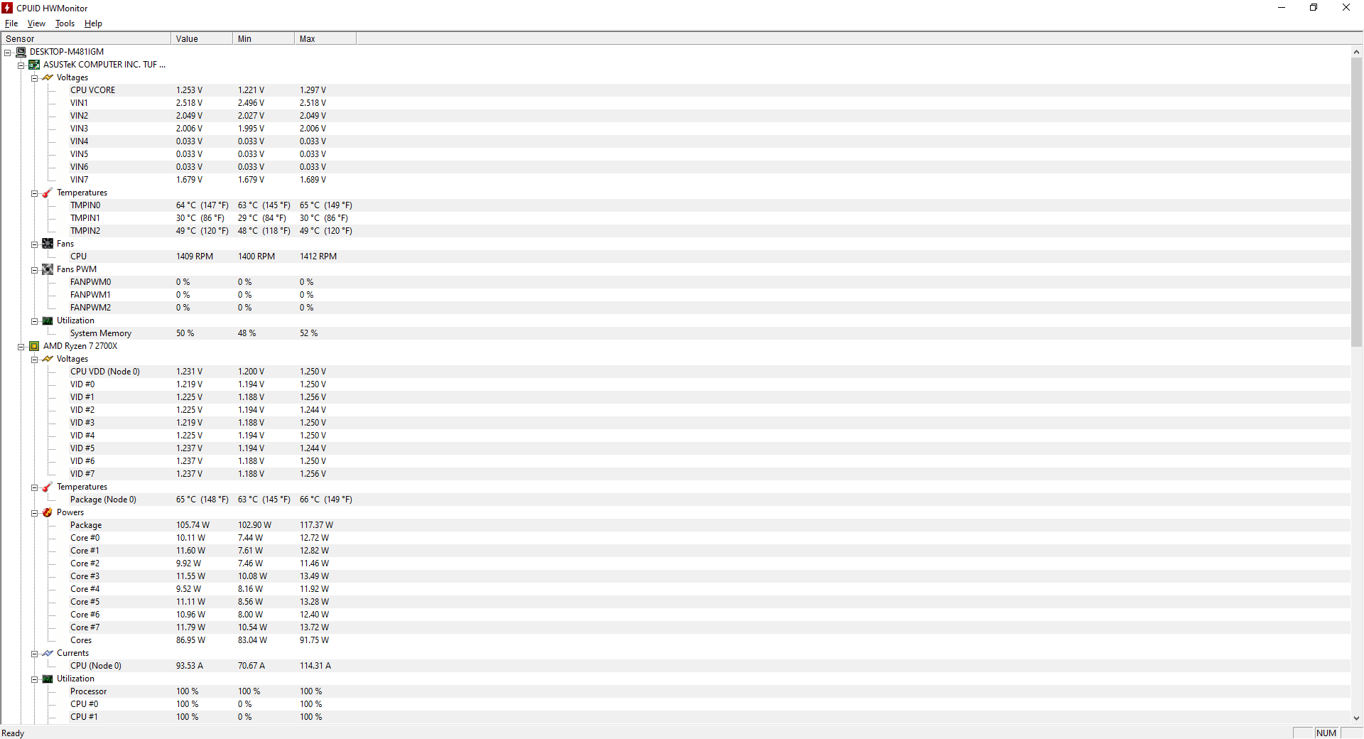 Ogólnie system jak i gry stabilnie działają. Obiążajac OCCT tem procka max 64 w idle 35. Grafika max w stresie 60 stopni.