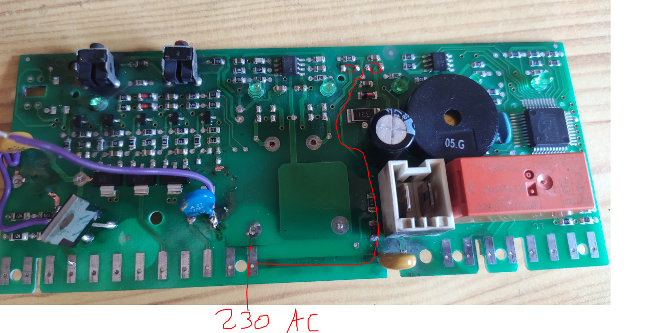 Mam problem z programatorem zmywarki Candy Trio 503X, nastąpiło zwarcie w układzie. Po krótkiej diagnozie zauważyłem zwarcie na linii 12V (na płytce jest transformator 230/12 AC - na rysunku żółte kółko). Uszkodzeniu uległy 4 diody zaraz za nim (pytanie moje jest następujące: czy są to diody zenera czy prostownicze, jak je zidentyfikować i dokupić - doszedłem do wniosku że mają one prostować napięcie z AC na DC) następnie dwie diody również zaznaczone na schemacie na niebiesko są uszkodzone. Uszkodzeniu uległ także prawdopodobnie tranzystor (nie jestem pewny czy to tranzystor - opis na elemencie niewiele pomaga). Na rysunku zaznaczony w pomarańczowym kółku - oznaczenie na elemencie: E ZOS Y525 (ewentualnie E Z0S Y525) obok są jeszcze 3 takie same, które zwarcia nie powodują.