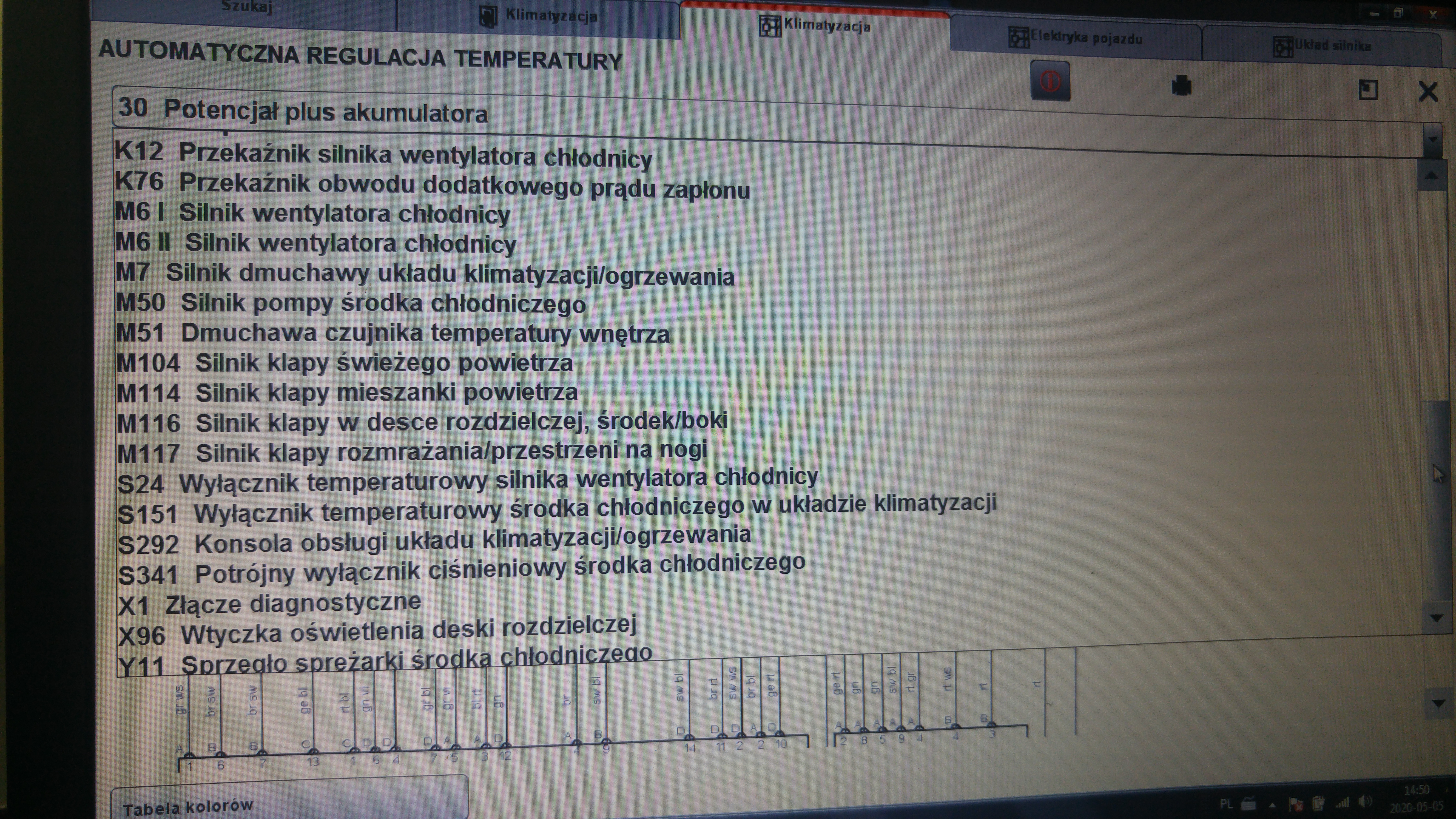 Z tego co odczytałem w ELSA(tylko tam jest opis dla starej wersji klimatyzacji z czuujnikiem F129 4 pin), jest opisane że ma się włączać pierwszy bieg na V7, a że ja mam wentylatory równolegle to obydwa mają pracować na pierwszym biegu, a nie pracuje żaden.