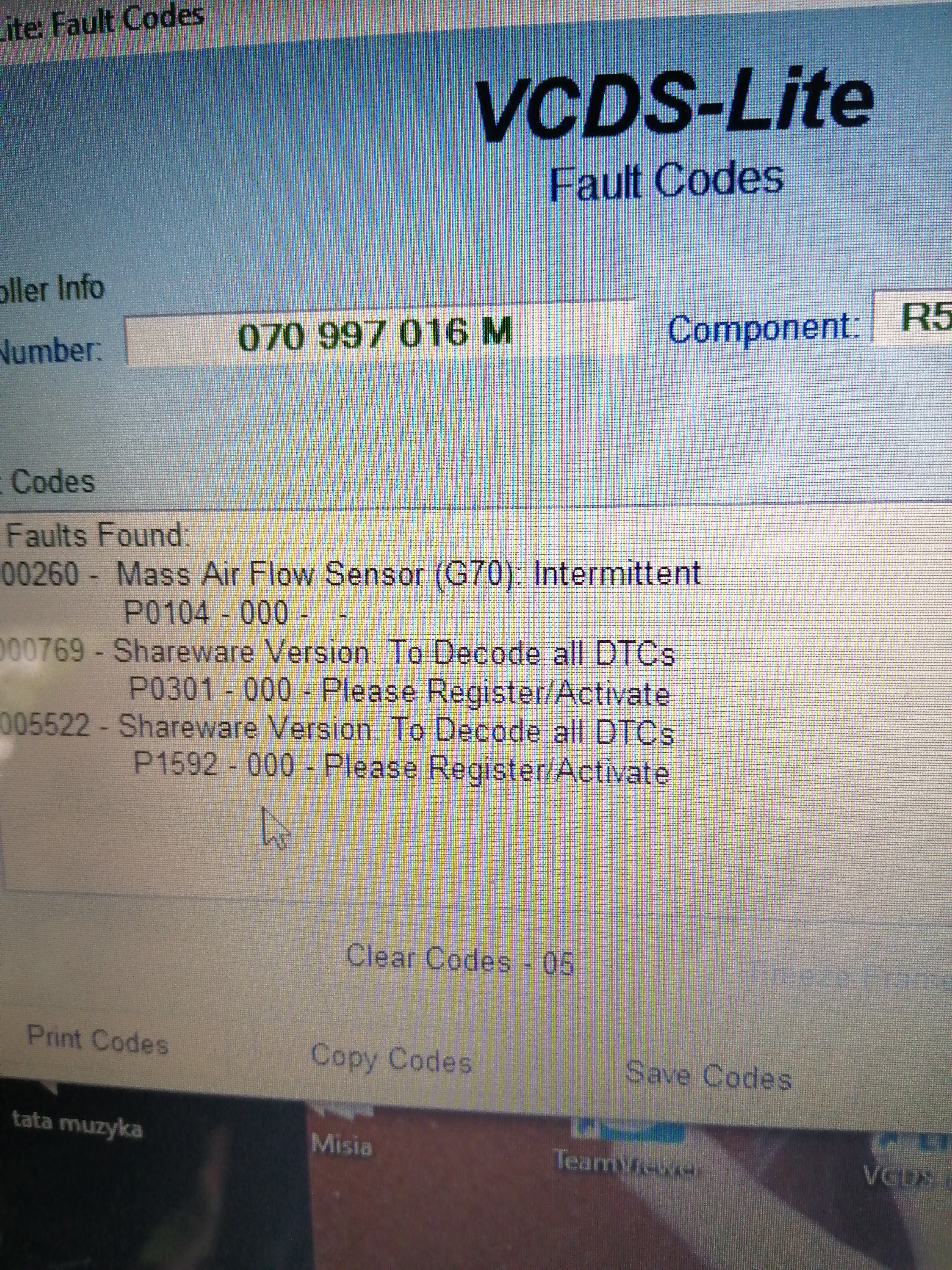 Witam. Chciałbym zapytać czy Błąd P0104 i Błąd P0301 mają coś wspólnego, wiem, 104 to przepływka z którą do dziś nie ogarnąłem co się dzieje teraz Błąd P0301 pokazał się. To jest vwT5 2.5 tdi 131ps. Jeśli ktoś by mógł pomóc to dziękuję z góry. Wylam też foty z diagnozy