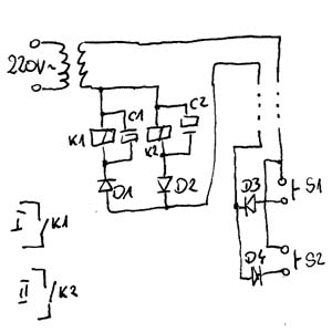Jak żarówka nie będzie potrzebna, to będziesz potrzebował kupić 6 diód 1N4007, dzwonek i podwójny włącznik.