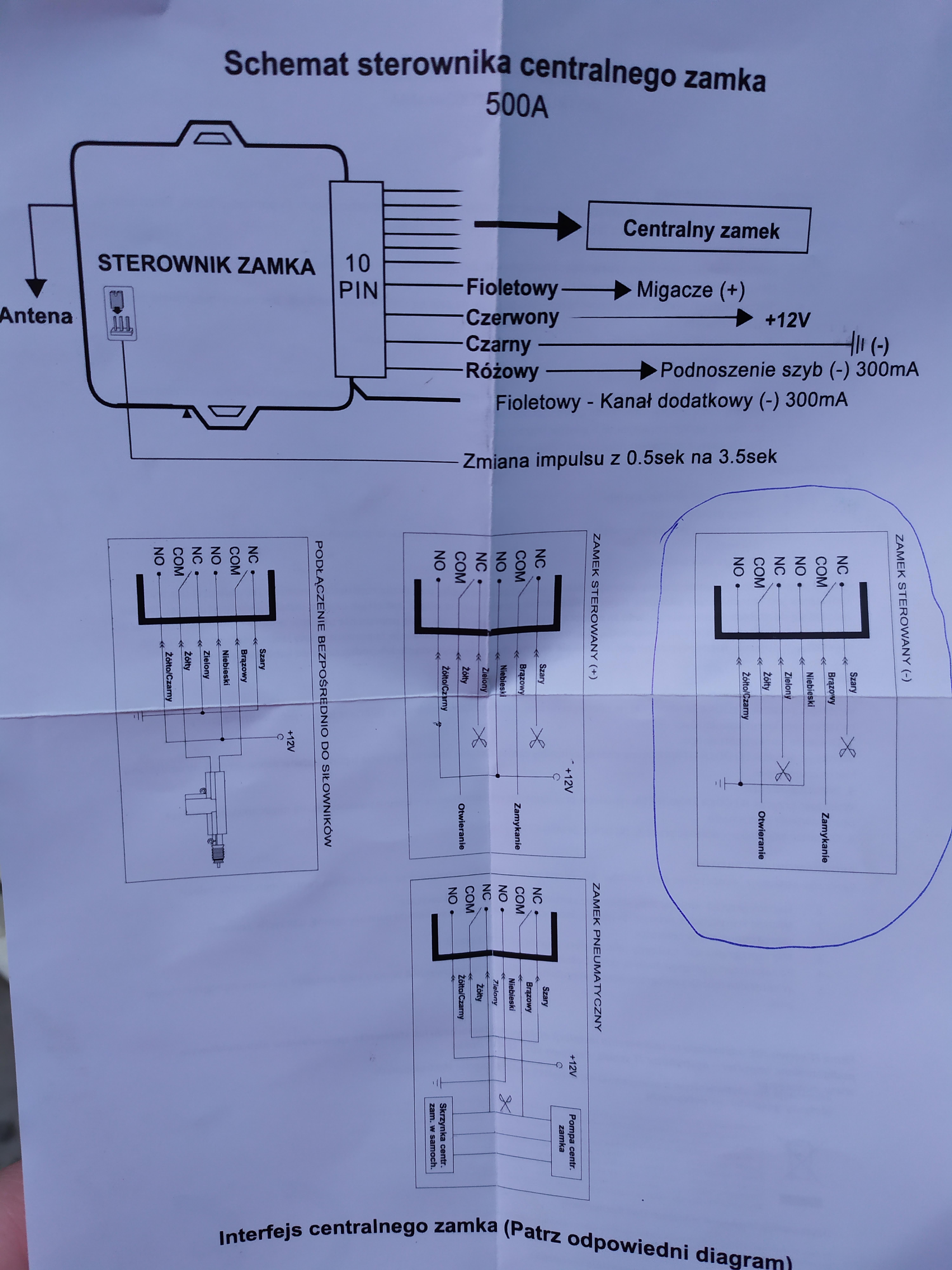 Witam, mam problem z nowo założonym sterownikiem zamka centralnego w Chevrolecie Tacuma. W załączniku wrzucam schemat fabrycznej instalacji wraz z jej opisem oraz schemat w jaki sposób to połączyłem. Sama centralka działa bo udało się sparować pilot i po wciśnięciu przycisku coś tam sobie cyka jednak nie otwiera ani nie zamyka drzwi. Jakieś pomysły?