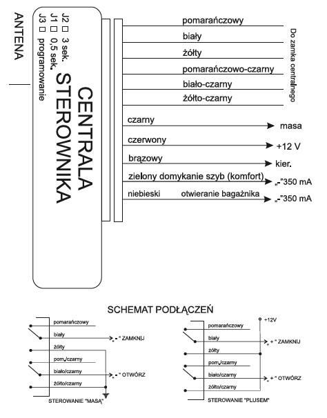 Chcę podłączyć sterownik centralnego zamka - umieszczam schemat; Raz pisze że w tym roczniku jest sterowanie masą a raz że plusem;Zaznaczam iż jest jeden przycisk na konsoli środkowej-zdjęcie kostki z innego tematu; i tutaj chciałbym wpiąć przewody otwierania/zamykania;Przycisk awaryjnych posiada 3 przewody-czy tutaj podpinam przewody brązowe od migaczy??Jak mam rozumieć "Można to zrobić "tnąc" przewody biały i zielony i "podając" +12V. "?Proszę o wyrozumiałość i pomoc.