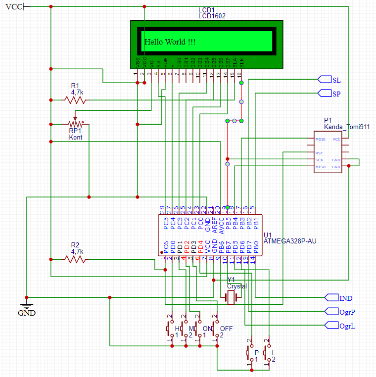 Witam, zmontowałem Sterowanie do trackera do solara na atmedze 328 i pojawia się problem z dzialaniem przycisków. Otóż raz działa wszystko, raz jak nacisnę jeden to działa jak drugi, raz nie działa wcale. Dotyczy to wszystkich przycisków. Zwarc w układzie nie ma. Na załączonym schemacie nie zwracajcie uwagi na zwarcie przy LCD (błąd w schemacie). Dodatkowo załączam kod z bascom. Proszę weźcie pod uwagę to że jestem amatorem 😁