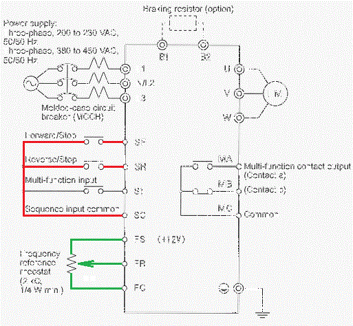 Falownik: 3G3EV 0,4 kW 200V, podpięty układ z potencjometrem i przełącznikiem START: PRAWO - LEWO. Przełącznik i potencjometr podpięte zgodnie ze schematem. Przełącznik sprawdzony miernikiem. Instrukcja po angielsku 120 stron.