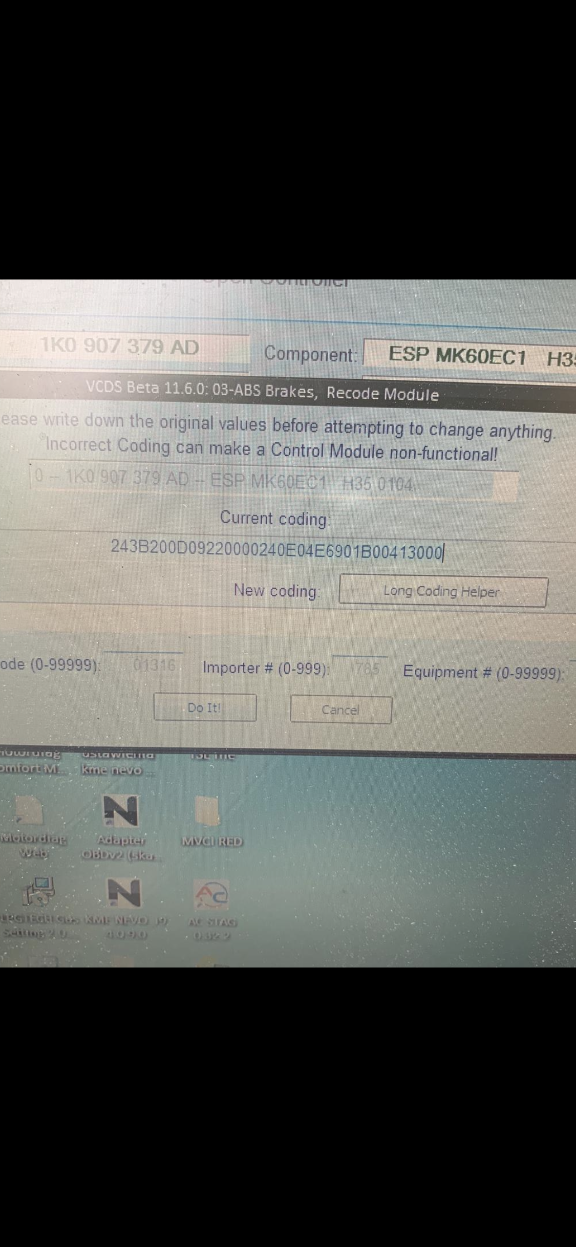 Witam.Potrzebuje pomocy ..po podpieciu innych zegarow zresetowal soe sterownik abs,czy ktos by pomogl w wyliczeniu kodowania i podpowiedzi jak ja zakodowac na nowo, Pompa 1k0907379ad,vin -WVWZZZ1KZ9W806322 golf plus 2008/2009