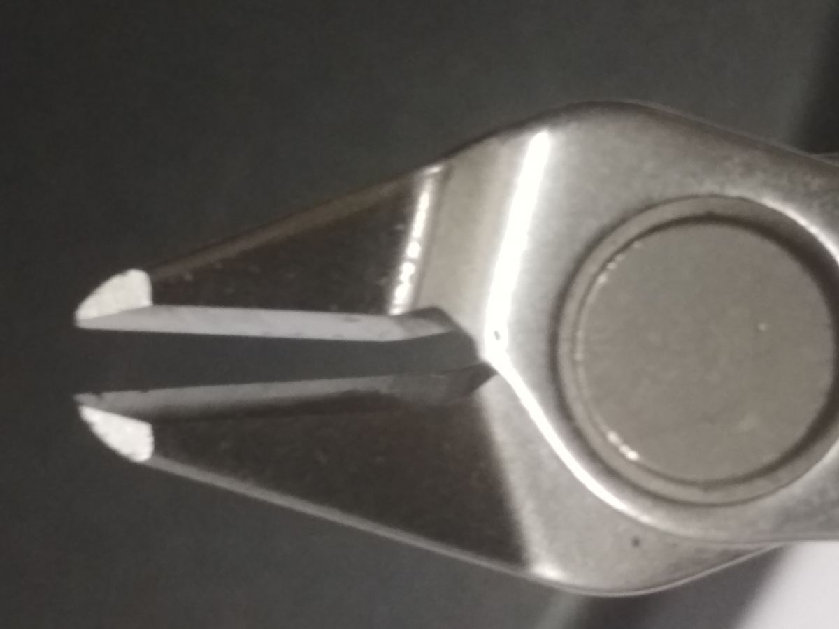 Na końcu ostrzy widoczne bardzo niewielkie wyszczerbienie, trudno mi jednak się odnieść czy takie były już po zakupie czy powstało to po kilkunastu cięciach które już wykonały zanim zacząłem pisać recenzję.