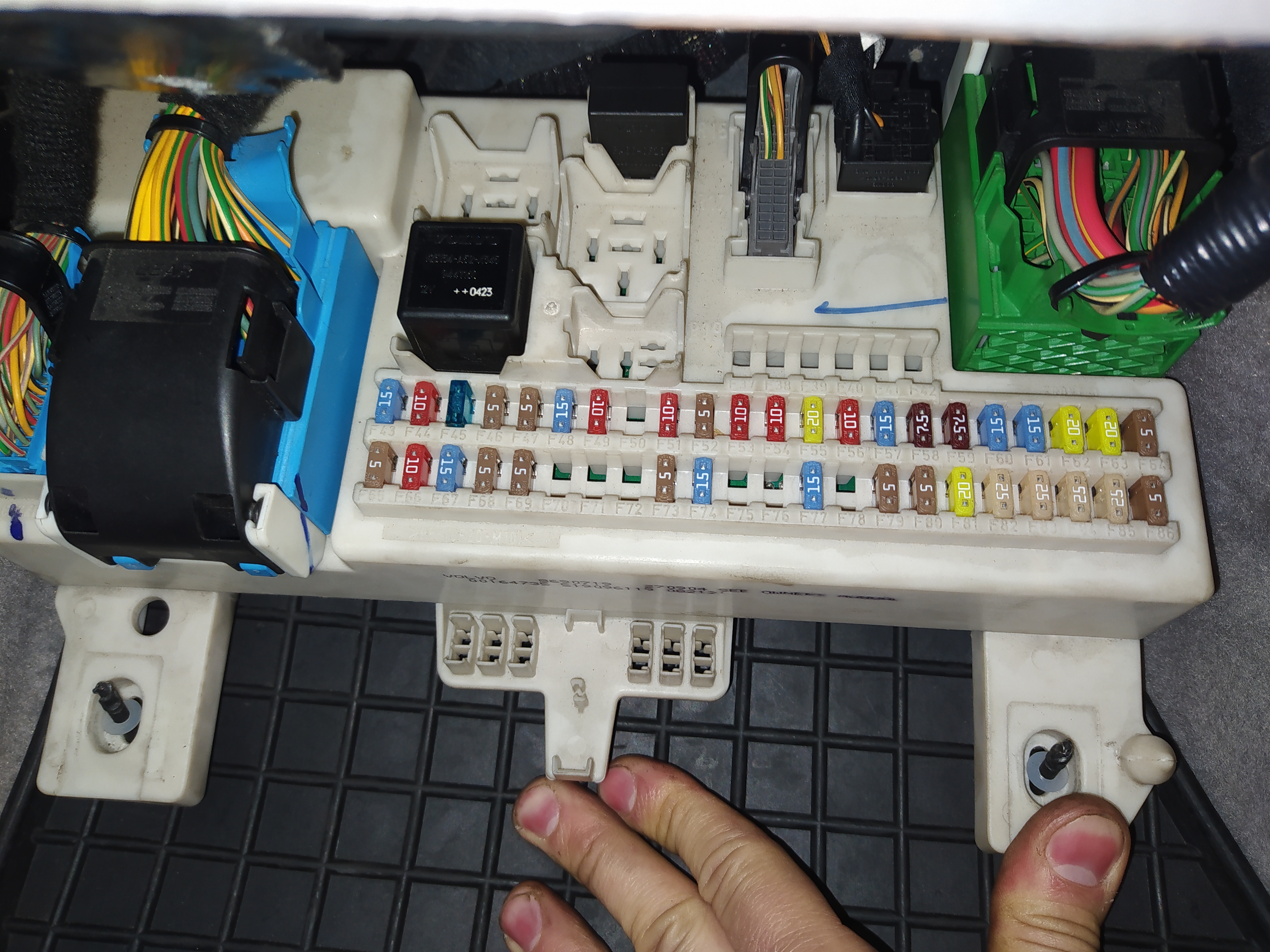 Skrzynka bezpieczników inteligentnych,Sterownik sieci pokładowej) spada do 0,05A. W kabinie pod nogami pasażera po odpięciu bezpieczników F46 i F47 (Oświetlenie przełączników,Oświetlenie schowka podręcznego,Zestaw wskaźników,OŚWIETLENIE WNĘTRZA,Tylna lampka do czytania) pobór spada do 0,35A. Ale po wypięciu zielonej wtyczki (w załączniku), słychac odłączenie przekaźnika i spadek poboru do 0,00A. Czy ktoś ma rozpiskę tej wtyczki bądź pomysł na rozwiązanie usterki ? Brak kodów usterek w GEM czy tam CEM (jak kto woli).