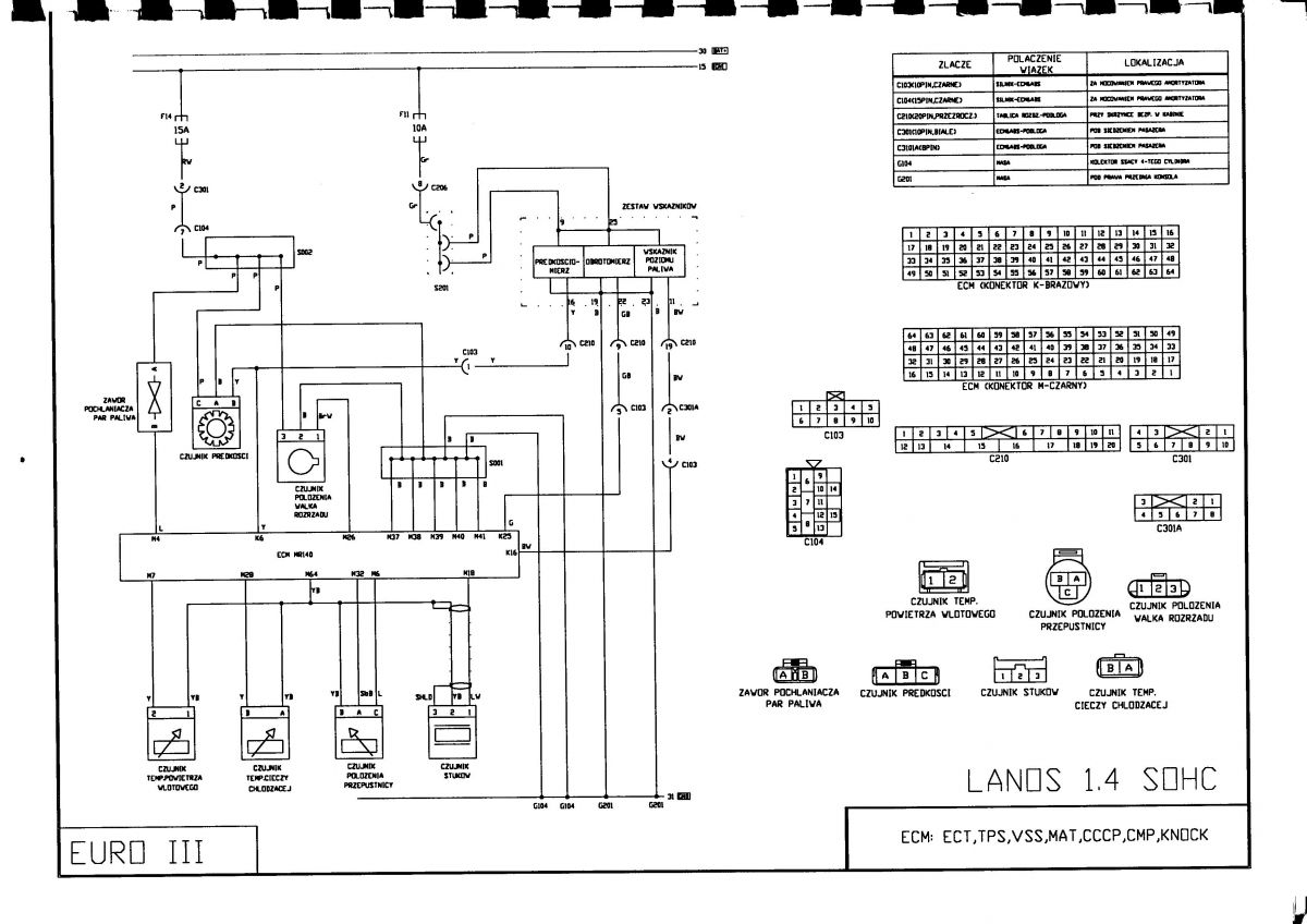 Witam. Lanos T150 1.4 Euro 3 (KLAT - 2003) z sterownikiem Delphi - Delco poszukiwany jest pinout do tego sterownika w szczególności umiejscowienie czujnika położenie wału i wałka.
