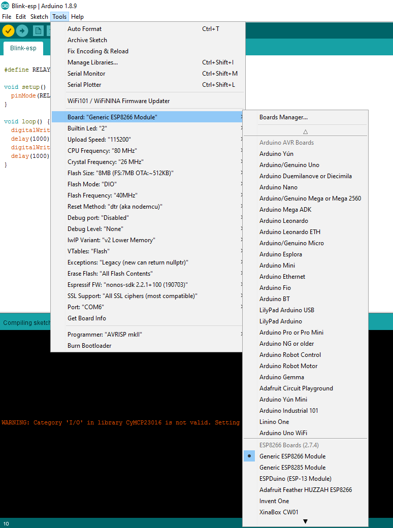 Teraz już użyjemy normalne Arduino IDE i zrealizujemy na nim blink który przełącza co sekundę przekaźnik.