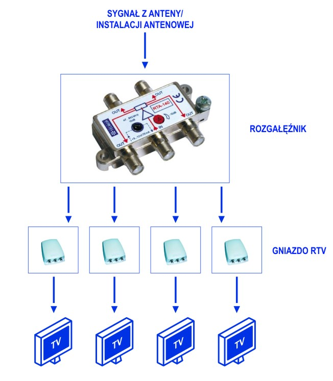 Witam. Na strychu mam 3 przewody koncentryczne które są przeciągnięte do dwóch 3 pokoi do gniazdek. Problem jest w tym że po podłączeniu do anteny zasilacza i zasilacz do rozgałęźnika w pokoju nie ma sygnału na tv.