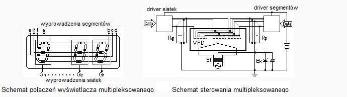 Sterowanie wyświetlaczem multipleksowanym wymaga bardziej rozbudowanego układu sterującego oraz większego napięcia zasilającego rzędu 30-35V a także odpowiednich zależności czasowych sygnałów siatek i anod (segmentów). Poniżej przykładowe przebiegi sygnałów;