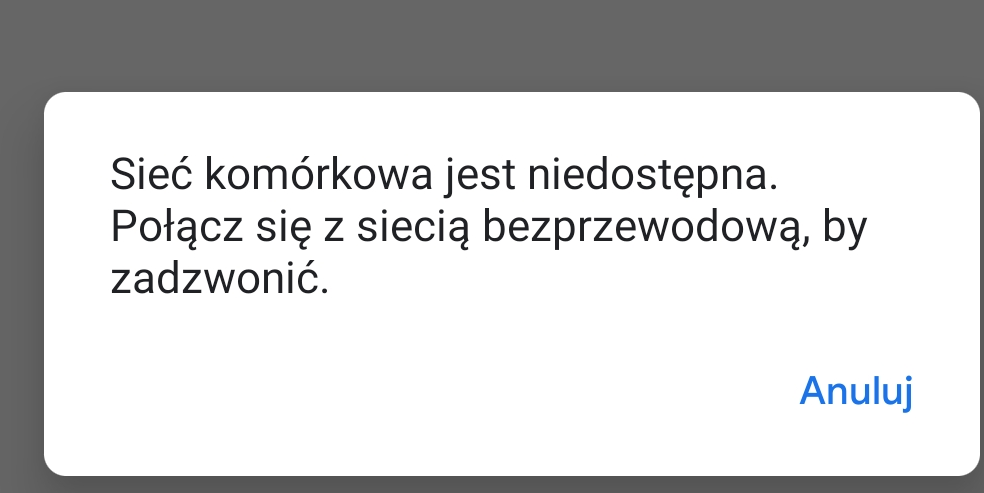 Witam tak jak w temacie mam problem z uruchomieniem usługi wifi calling w sieci t-mobile dzwoniłem do biura obsługi uruchomiłem usługę w telefonie wszystko zrobiłem tak jak należy tzn wyłączyłem dana mobilne brak sieci (bo w tym miejscu jej brak) połączyłem się z siecią wifi ale podczas próby dzwonienia mam komunikat