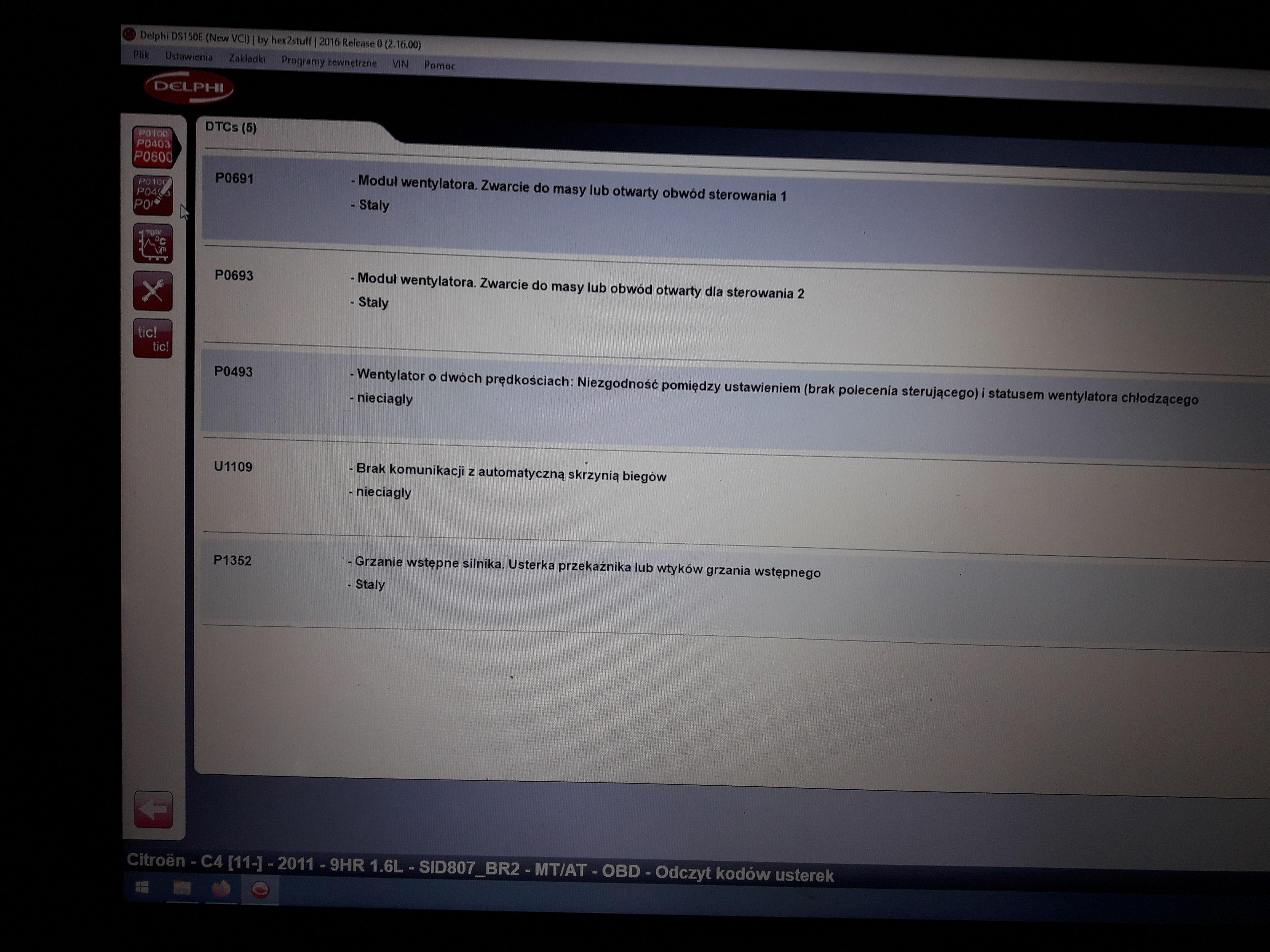 Już myślałem ze po sprawie bo po zwarciu pinów na wtyczce do rezystora wentylator działał wiec zasilanie było OK. Niestety znów testerem próbuje wysterować 1 i 2 bieg wentylatora i znów wentylator się nie włącza. Następne podejrzenie padło na rezystor ale dałem w pracy koledze do sprawdzenia i mówi ze przekaźniki rezystora działają poprawnie. Powiedział że 1 i 2 pin pierwsza lub druga prędkość wentylatora, 3 pin masa, 4 pin nie wie ale prawdopodobnie jakiś sygnałowy który odpowiada za odczytanie prędkości wentylatora. Podłączyłem regulator z powrotem i wysterowałem na krotko tak jak powiedział: masę na 3 pin i "+" na 1 i 2 pin i wentylator zadziałał w pierwszej i drugiej prędkości. Na testerze w tym momencie jak wysterowałem na krotko rezystor wyskoczyły 3 błędy do wentylatora (link poniżej) oraz inne ale chyba nie maja wpływu na wentylator.