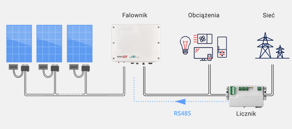 Urządzenie to powinno być w stanie limitować prąd generowany z instalacji PV oraz ograniczać prąd zwracany do sieci