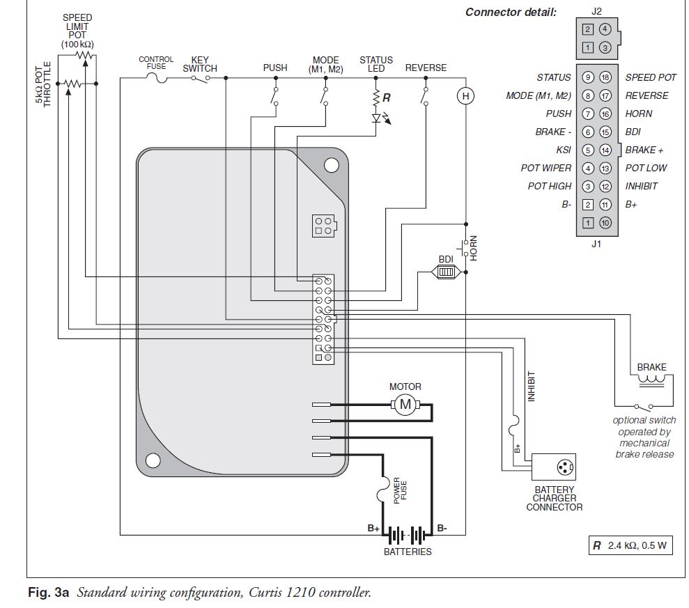Dzień dobry. Czy mógłby mnie ktoś poprowadzić przy wymianie i montażu nowego sterownika CURTIS 1210-2201? Zdemontowałem stary i zamontowałem nowy i nic. Trakcja szorowarki VIPER FANG -24 nie chce ruszyć. Do sterownika są podłączone 4 grube przewody i tutaj raczej nie popełniam błędu, bo sterownik ma oznaczenia B+, B- oraz M+, M-, a więc bateria do B i silnik do M. Gdy łączę je "na krótko" parami to silnik się obraca. Sterownik ma jeszcze gniazdo 18 pin-owe i tu nie wiem gdzie popełniam błąd, bo sterownik jest (chyba) sprawny. Myślę, że popełniam go przy podłączeniu potencjometru (też nowy), ale sam już nie wiem. Wg schematu potencjometr powinien być podłączony czterema kablami do pin-ów 3, 4, 13, 18.