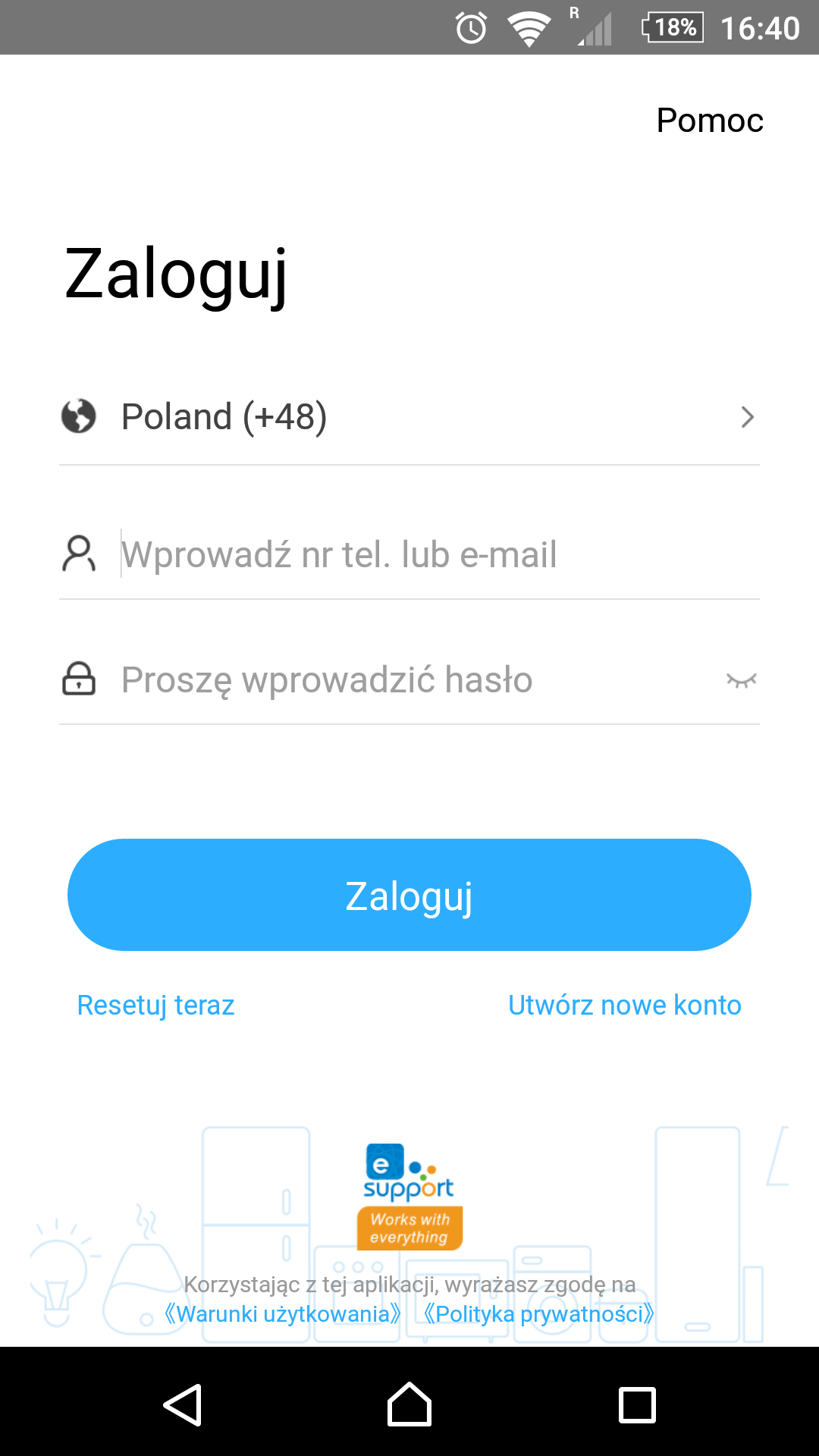 Podłączałem myszkę do radyjka, w miejscu "zaloguj" po lewej włącza się "warunki użytkowania, a po lewej "polityka prywatności"
