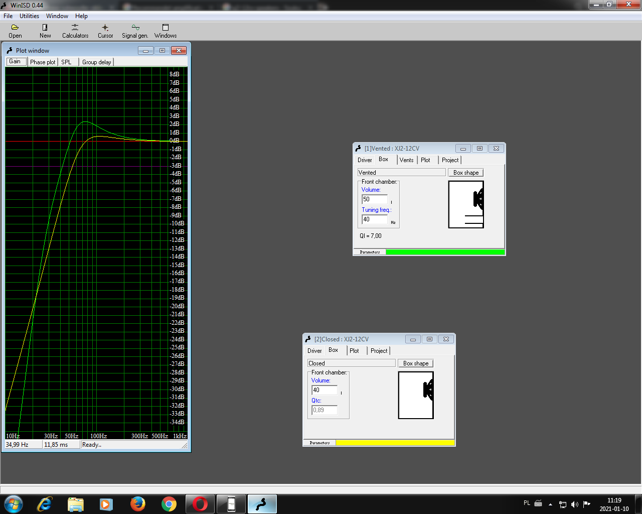 Bardzo dziękuję za poświęcony czas. Mam jeszcze jedno pytanie, pomysł szalony albo głupi sam nie wiem. Obudowy które mi wyliczyles będą dwie w bagażniku, tzn jedna podwójna zamknięta. W aucie (audi 80) mam otwór w półce na głośnik 12 cali i posiadam jeden głośnik jbl stage 1210 i też chciałbym go wykorzystać. Plan mam prosty, zabuduje 3/4 bagażnika na wszystkie 3 głośniki, oczywiście każdy będzie w osobnej komorze. Te dwa buszmeny które liczyles będą napędzane wzmacniaczem jbl stage a9004 4 kanałowy 2x220w rms 4ohm a tego jbla w półce zasilę drugim wzmacniaczem który obecnie napędza 4 głośniki ( 5 kanałowy)