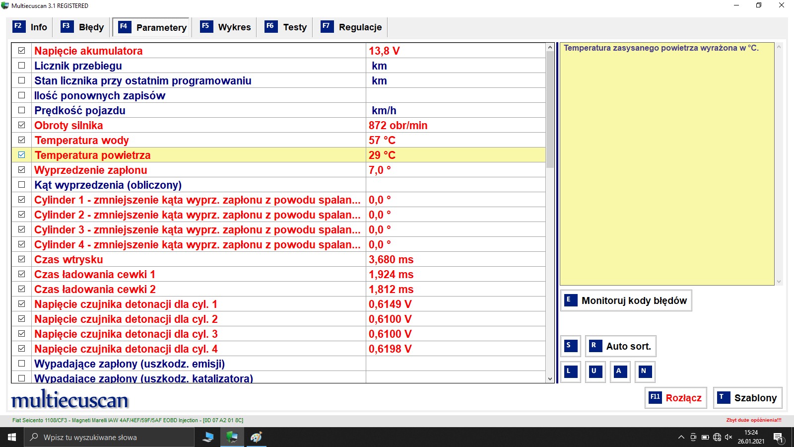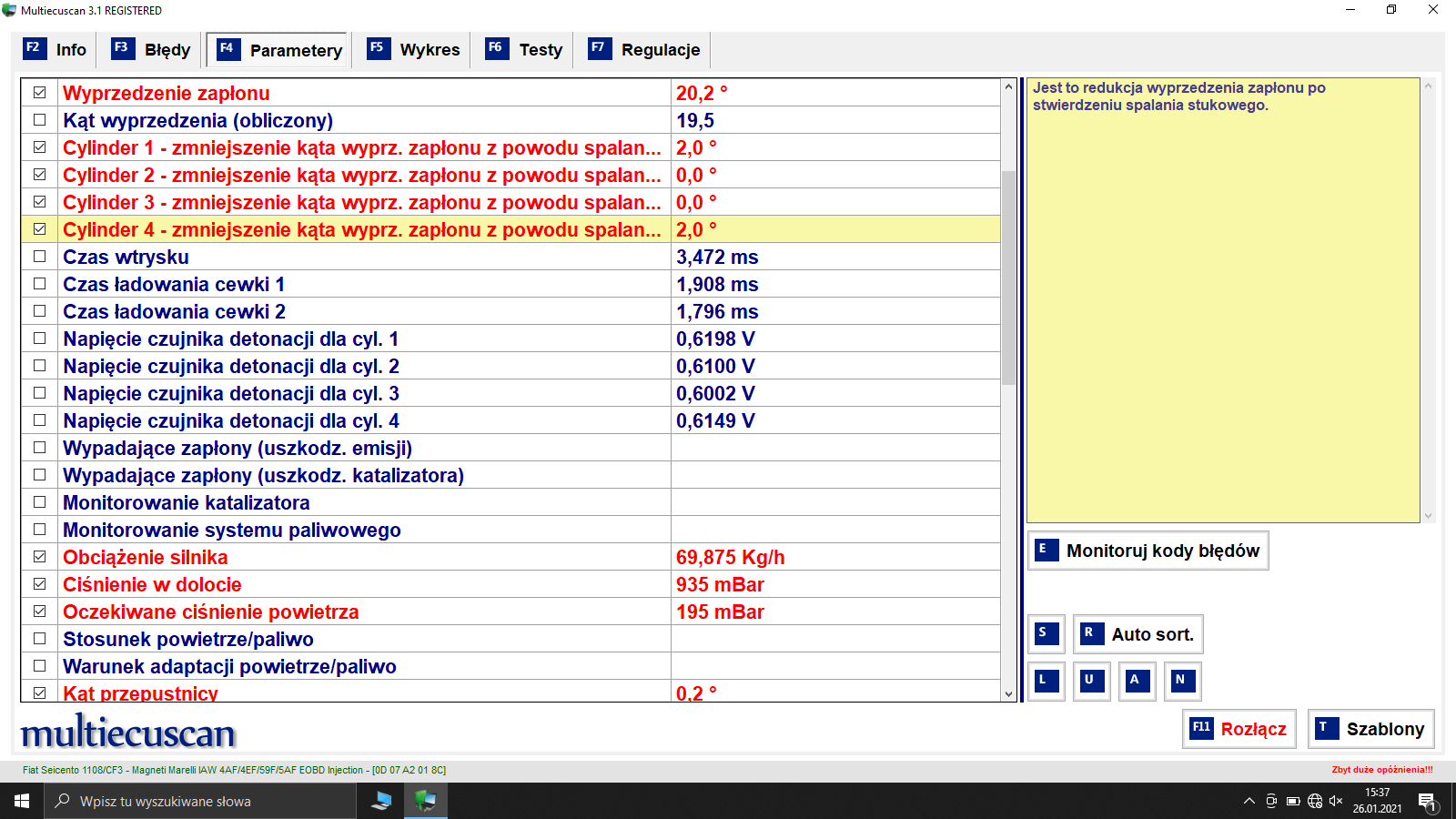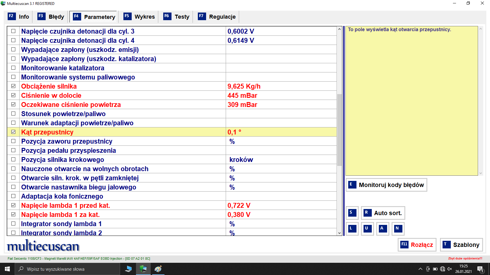 Parametry pracy silnika podczas jazdy, prędkość około 80km/h. Trzeci bieg. Gaz w podłodze: