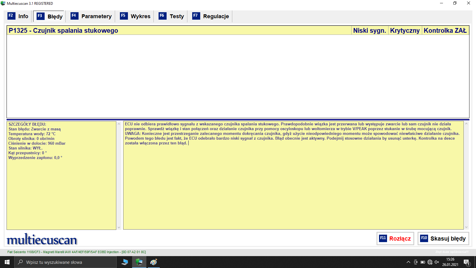 Skasowanie błędu likwiduje go aż do ponownego uruchomienia silnika. Wystarczy wyłączyć i jeszcze raz włączyć i błąd wraca. Nie trzeba nawet odpalać silnika.