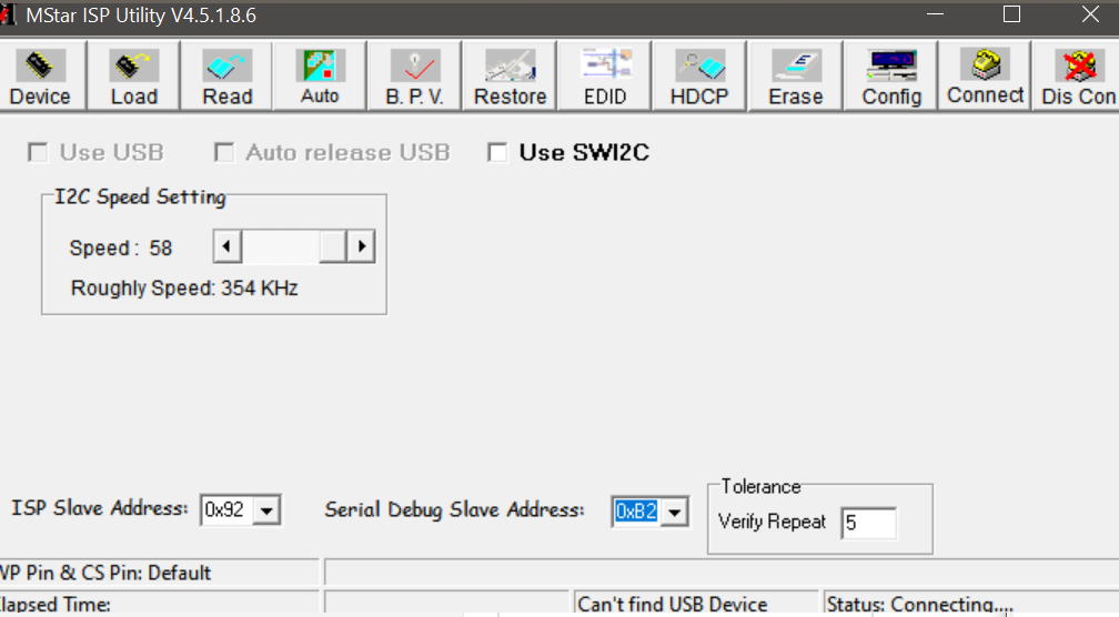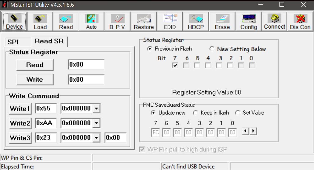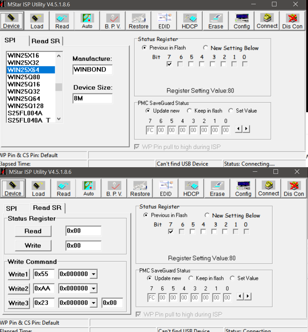Problem w tym, że już przy samej próbie połączenia się z płytką w programie MStar IPS Utility wyskakuje mi komunikat "Can't find device type", zainstalowałem załączone sterowniki, ale dalej to samo.